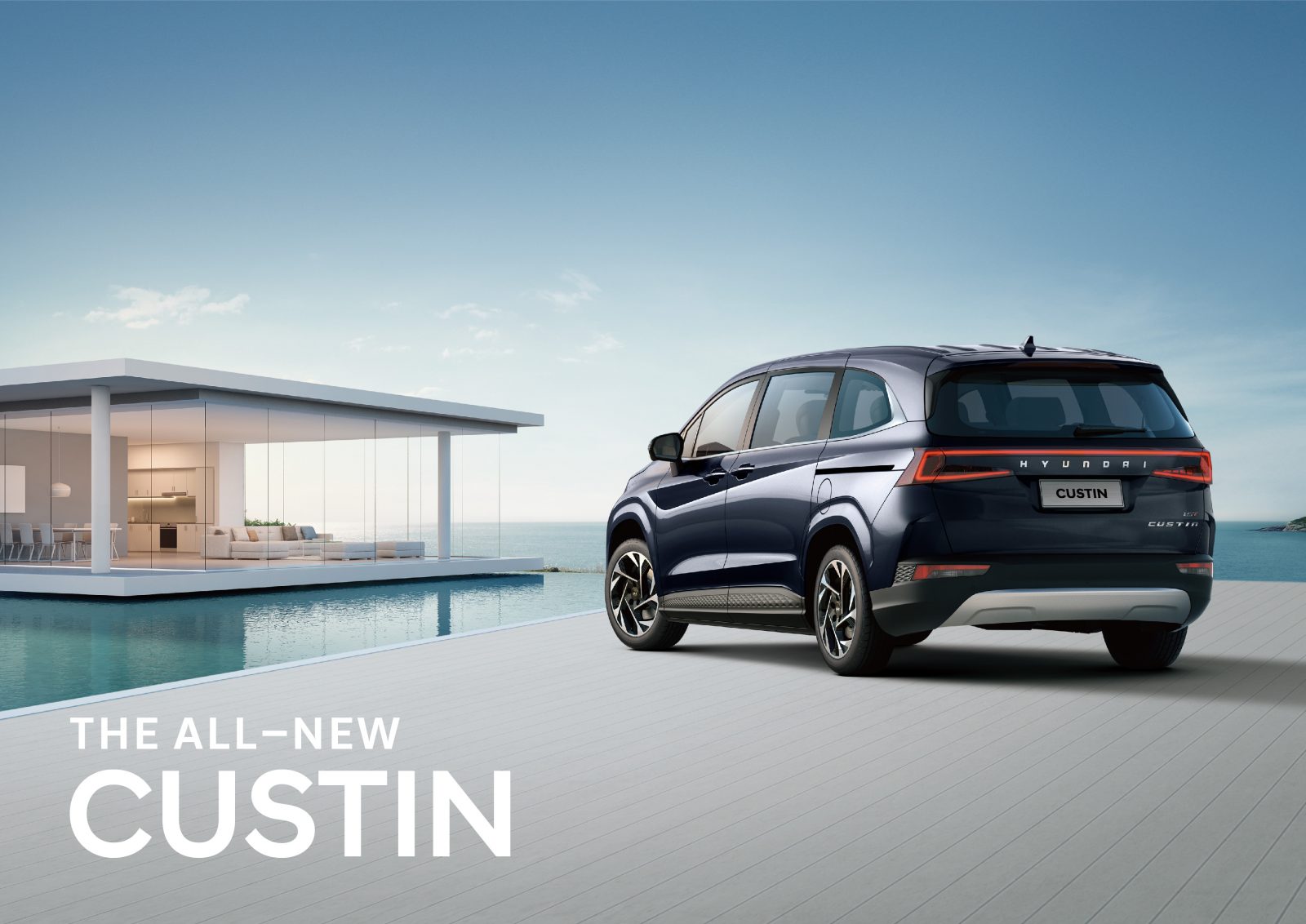 The All-New Custin出自品牌新世代「Sensuous Sportiness」設計語彙,勾勒出更勝傳統MPV的動感流線車體造型。車身尺碼長/寬/高為4,950mm X 1,850mm X 1,734mm,尤其傑出3,055mm軸距長創造同級最開闊後排乘坐空間。國內上市款將搭載最新世代Hyundai SmartStream 1.5 Turbo引擎,最大馬力170ps,扭力峰值在1,500rpm即全輸出,搭配 8速自排變速系統,滿載出遊動力表現輕鬆暢行。