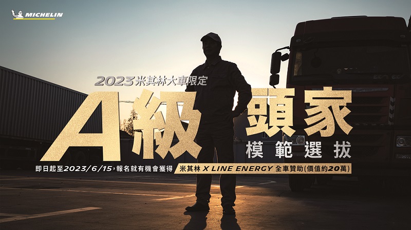 為了致敬拚經濟的台灣頭家,台灣米其林特別推出「A級頭家模範選拔」,邀請擁有大貨車駕照的藝人李懿代表台灣米其林向所有運輸頭家廣發請帖,即日起至6月15日報名期間內,符合報名資格者,完成LINE資料登錄即可參加「A級頭家模範選拔」,就有機會獲得米其林全車贊助MICHELIN X LINE ENERGY輪胎(價值約20萬元)共五名,詳情請上米其林官方LINE查詢https://lihi3.cc/7Wz0Q或可於「2023商業車博覽會」期間至米其林A12攤位填寫紙本報名表。