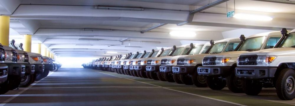 停滿白色TOYOTA的倉儲,這可不是台灣某處的交車中心。