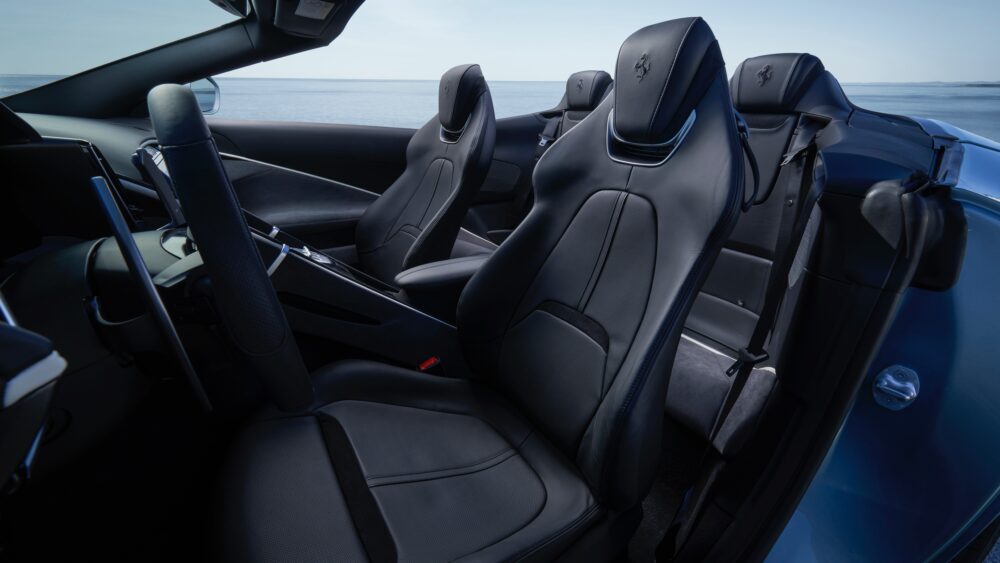 針對Ferrari Roma Spider的座艙輪廓和造型,法拉利設計中心的設計師們採用了與Ferrari Roma車型相同的設計理念。新車座艙基於自20世紀70年代以來躍馬車型所採用的「雙座艙」設計進行優化,座艙結構幾乎完全對稱,從而進一步改善空間與功能分布的完美融合,令乘客如領航員般充分體驗駕乘帶來的樂趣。