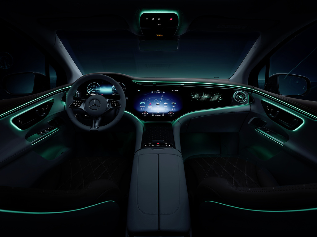 全球首發的豪華純電之作 EQE SUV,以休旅車型造就最大後備箱容積 1,675 公升的奢華空間,但外觀設計上依然極富流線與未來感,並以全球先進的空氣力學科技,配合智慧電能管理技術,提供最高達 590 公里 (WLTP) 的充裕續航里程,滿足長途旅程的需求。 然而驚人的不僅續航里程,還有最高達 10 度的後軸轉向系統,以及啟動越野模式時,會自動抬升車身高度的 AIRMATIC 氣壓懸吊系統,同步調整車身動態表現,展現征服各種路況的全能之姿。而科技不僅於此,進入車艙後,搶眼的 MBUX Hyperscreen 超寬幅螢幕提供多元的娛樂與車輛設定,更是乘客與車輛連結的重要管道,比如令人身心放鬆的「ENERGIZING 舒活套件」,瞬間帶領您體驗森林 Spa 或是徜徉海洋的解壓放鬆,這一切盡在寬闊的全能純電 EQE SUV。