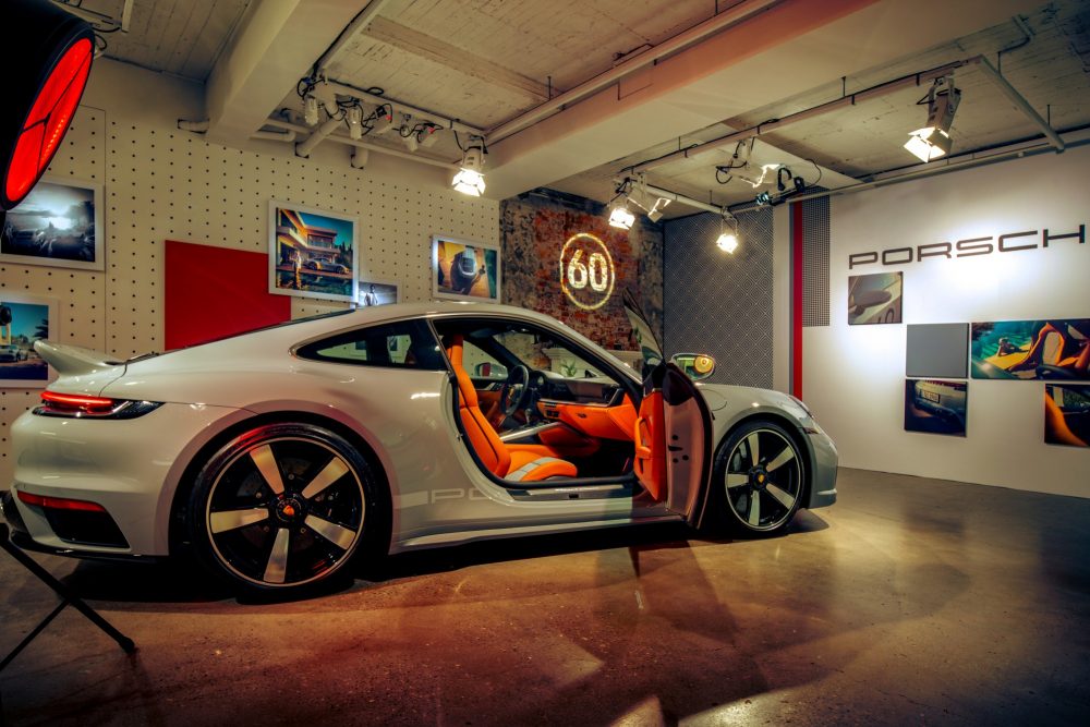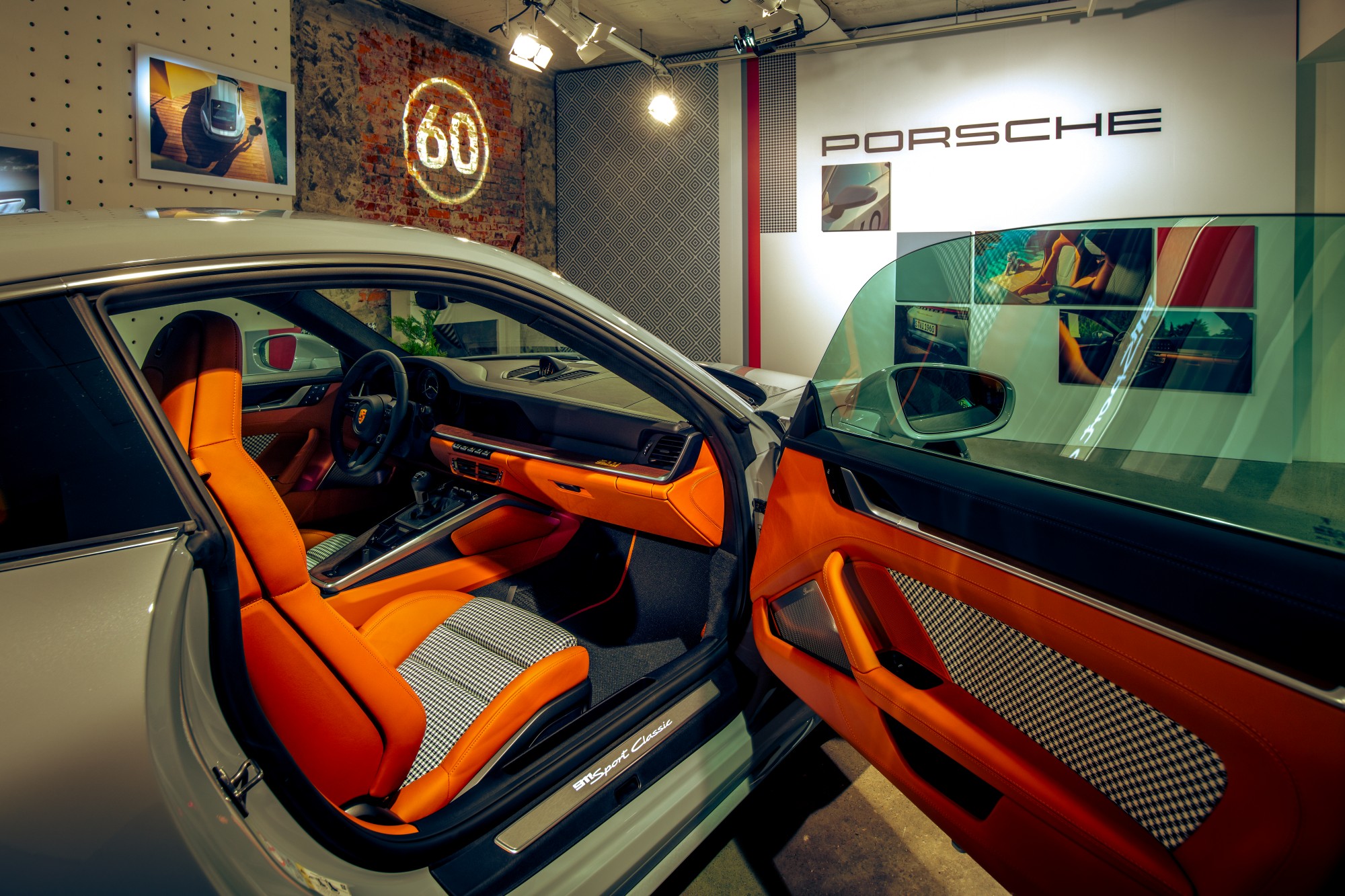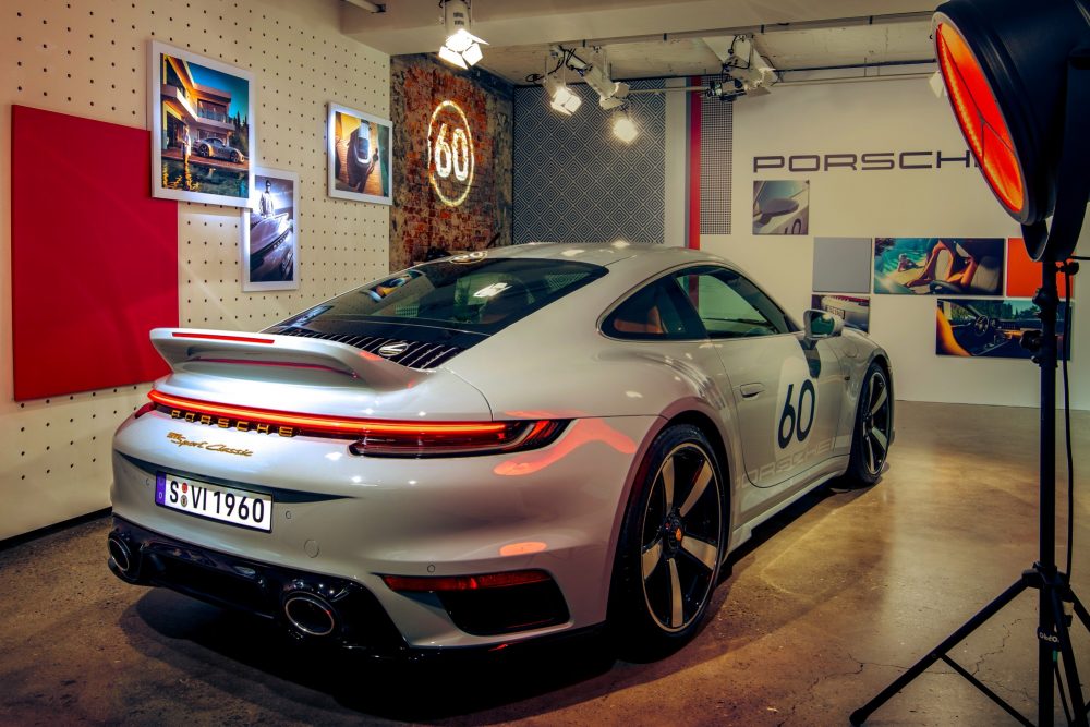 包含專屬於911 Turbo車型的寬體車身;向傳奇車款Carrera RS 2.7致敬的固定式碳纖鴨尾尾翼,並施以車身同色烤漆,以及雙拱式車頂皆凸顯了全新911 Sport Classic的獨特性。如同2009年推出第一款997世代的911 Sport Classic,設計師在為新款限量車型挑選專屬漆面的靈感源自保時捷356前期款的時尚灰漆面。為展現的跑格設計,在金屬跑格灰的車身上,兩道條紋將貫穿前蓋、車頂以及尾翼。除了專屬的金屬跑格灰烤漆外,新款911 Sport Classic也提供黑色、金屬瑪瑙灰、金屬龍膽藍或其他保時捷嚴選選色等選擇。車室內經典的千鳥格紋妝點在座椅中央以及車門飾板,而黑色/經典干邑棕色的雙色頂級皮革內裝,則與車身顏色形成優雅對比。