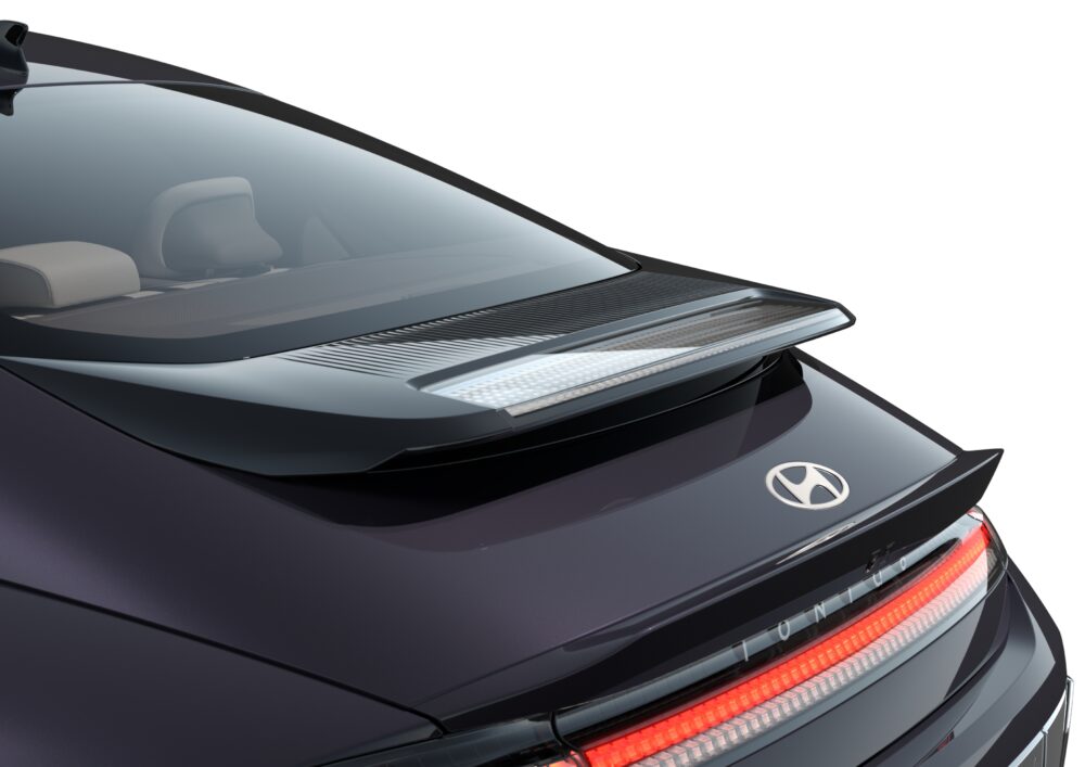 IONIQ品牌新作,搭載先進空氣力學AAF智慧型進氣啟閉系統、垂直進氣簾、跑車尾翼及20吋切削低風阻輪圈,與0.21cd的風阻表現。