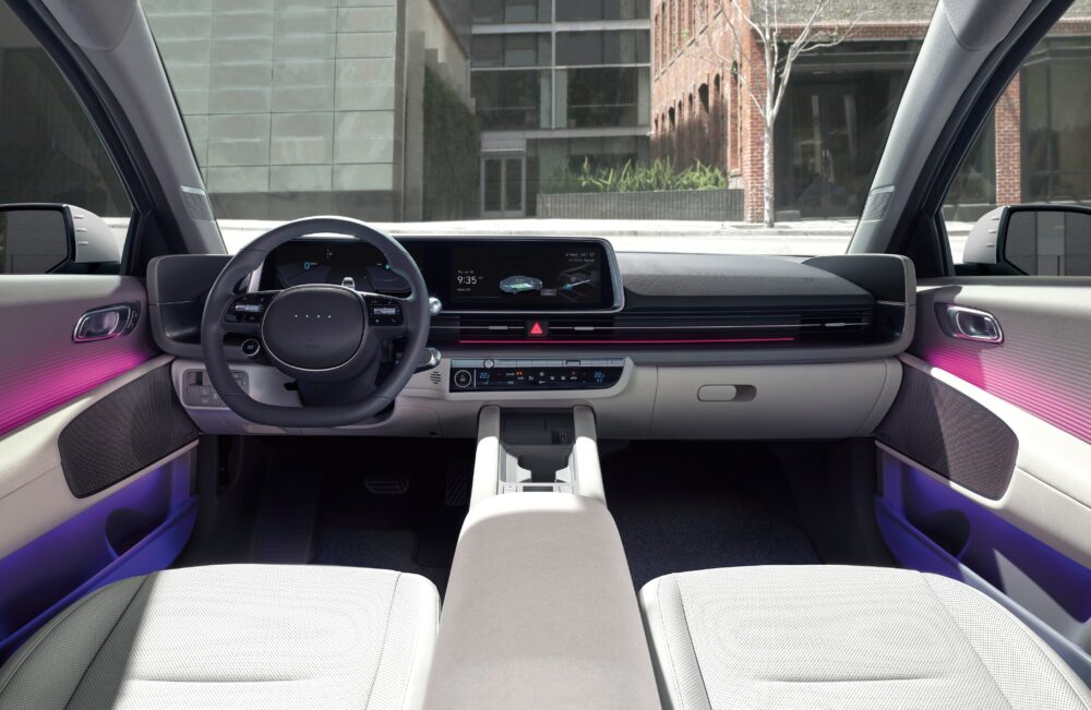 車室內受惠於先進E-GMP電動車模組化底盤,IONIQ 6軸距長達2,950mm,短前後懸設計將空間最大限度保留給乘座,不僅前座舒適,後排空間更是寬敞。後座則搭載IONIQ品牌創新之作-V2L( Vehicle To Load)外接供電功能,具備雙向電力供應能力,隨時隨地提供電能補充,滿足各式各樣的用電需求。