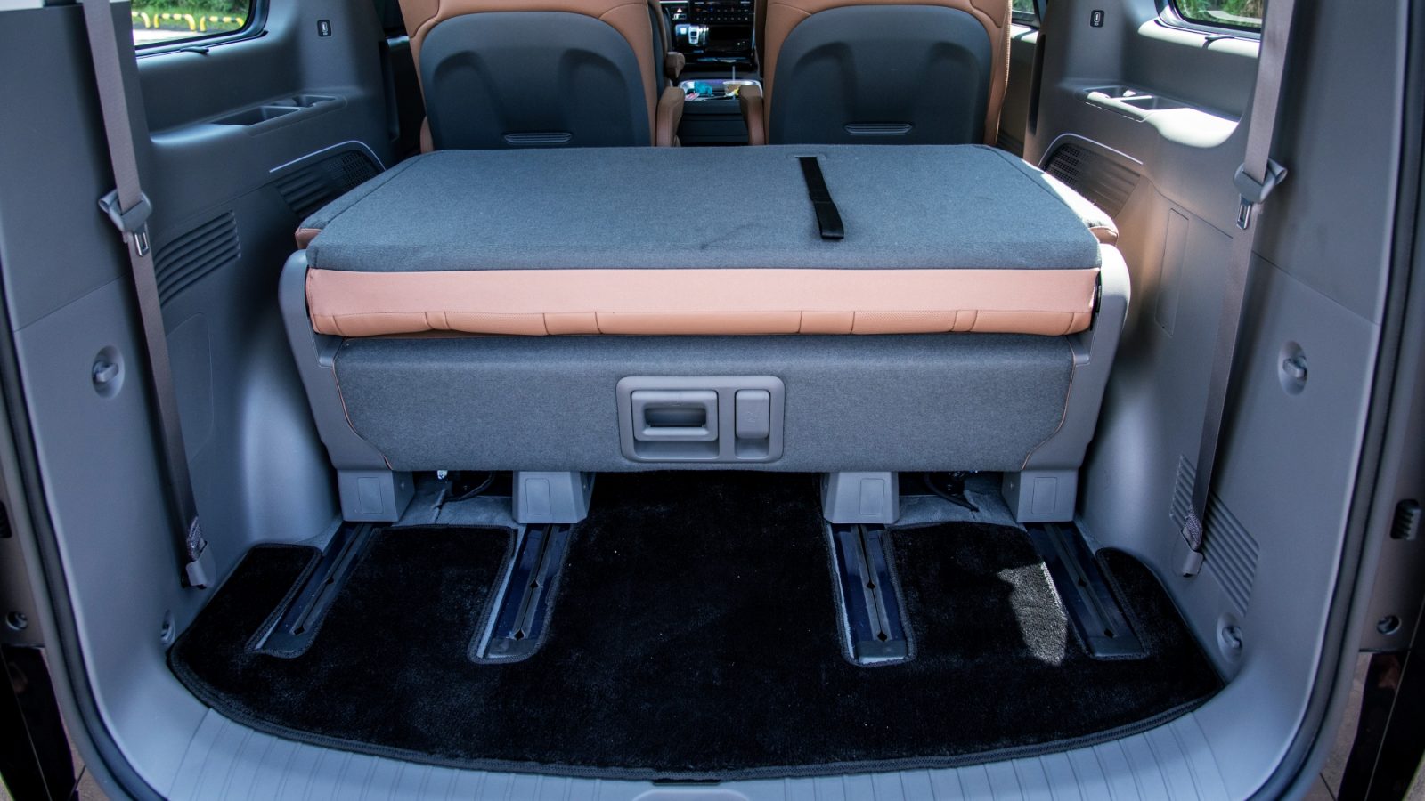 而按此衍生而來的第二個缺點,就是STARIA的座椅變化相對來說是比較薄弱的,第三排僅有前後滑移、椅背放倒、椅墊收折三種機能,並且無法拆卸,而第二排則只有傳統座椅機能(屏除仰躺不算),同樣也無法拆卸,讓整體變化性少了許多,我認為至少第三排要可以拆卸,才能有效將廂式車種的功能性最大化。這點就是T型車的強項了,也是STARIA相對可惜的地方。