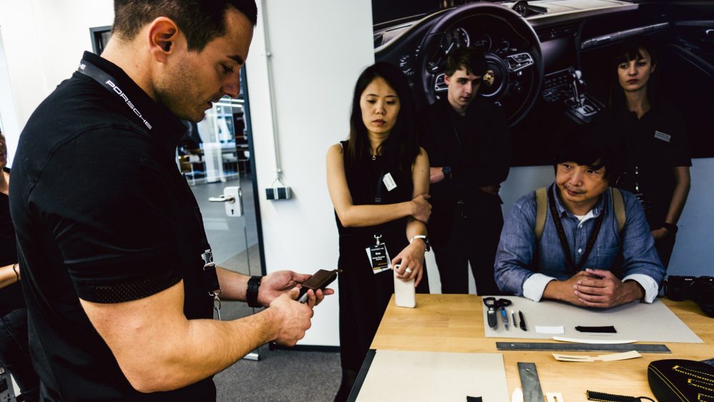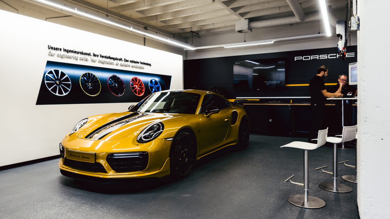 在本客製化工廠中,分為三個部門:個人化選配、高度化客製、成車部門,光外觀套件就有六百種不同的選配,從引擎到內外裝配色、皮革、縫線、各種細節配件,高度符合顧客期待,以2016年來說,已經客製化了一萬五千輛台“Porsche”了,最受歡迎的特殊套件有:“Porsche”頭枕徽章、運動化排氣管、獨特烤漆輪圈,以這台“911 Turbo S Exclusive”為例,特殊選配有:車身名牌、窗框碳纖維飾板、冷氣出風口皮革包覆,方向盤也不例外:皮革、面料、顏色、縫線。只要你想,你想在引擎蓋上印上一隻派大星也不過分。