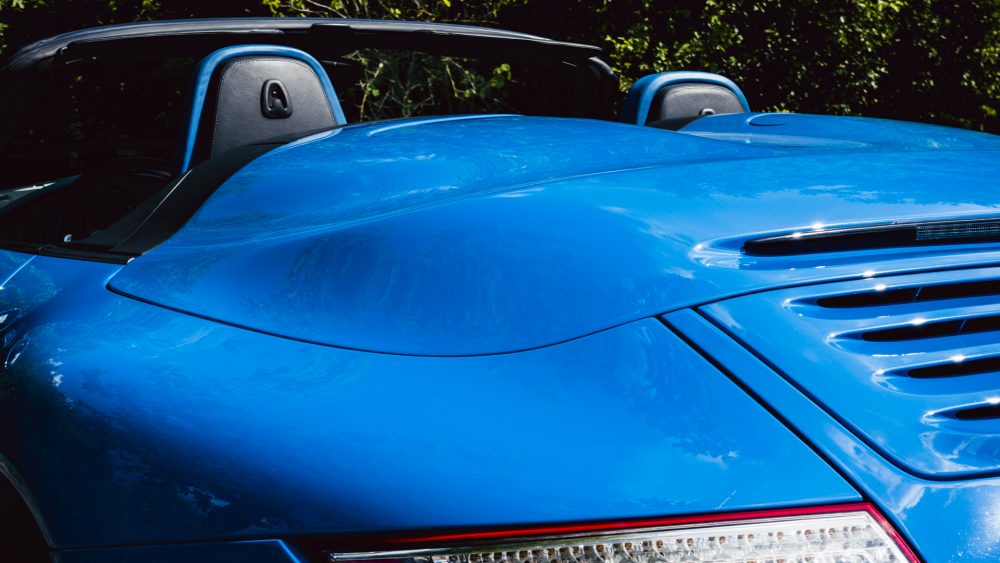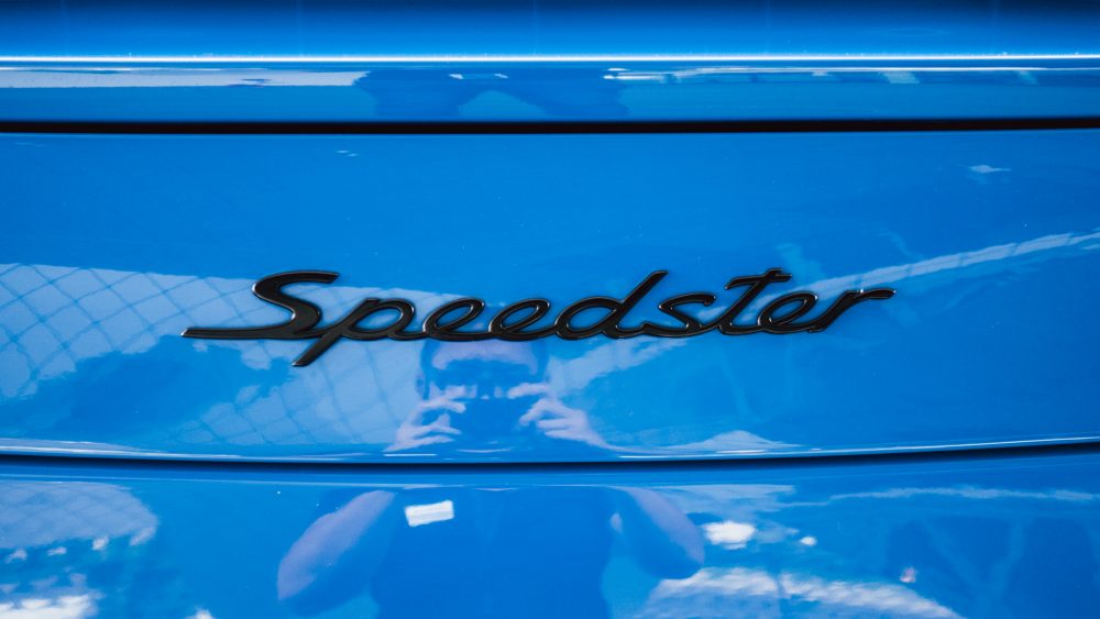 想像一下—當個人認為有史以來最出色的911世代與性感的雙座Speedster車身碰撞後激盪出的組合,又會是多麼秀色可餐呢?當我們從Porsche Museum牽到了這架令全球廣大媒體們都望眼欲穿的漂亮寶貝,即便左手邊那架墨綠色的鴨尾991更是因應Porsche Club六十周年紀念而生 全球僅僅限量13架的911 Club Coupe,眾人的目光卻都還是停留在這架在豔陽下綻放著耀眼藍色光暈的997 Speedster上。