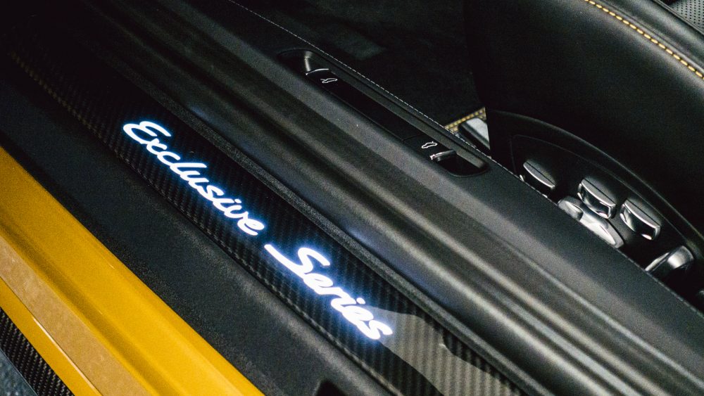 儘管這跟Exclusive Manufaktur沒多大關係,但“911 GT2 RS”早已在這回正式發表的同時正式售罄,下回請早。透過車廠不斷鞭策、凌虐、已經來到了700匹的天人階級,源自於“911 Turbo S” 的3.8升水平對臥渦輪引擎配上7速PDK雙離合器變速箱,零到一百加速只要2.8秒,極速可達340km/h,車重僅1470公斤,還是覺得太重嗎?車廠可提供碳纖維的車頂、行李廂蓋、防傾桿、鎂合金鋁圈作為選配,頓時可少了30公斤,擁有這麼多兇悍性能與配備,欸,“918 Spyder”,這枚銀彈你接得住嗎?