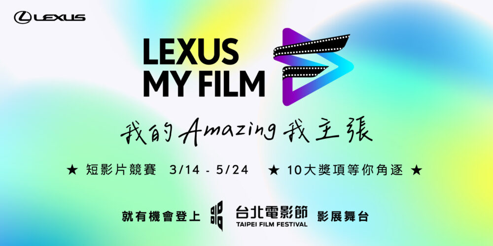 2023年「LEXUS MY FILM 短影片競賽」再度攜手知名影展「台北電影節」,以「我的Amazing 我主張」為題,鼓勵年輕世代大膽創作,以獨到的視角、勇敢展現自我。由影壇專業評審評選出的優勝作品,除了優渥的獎金,更將在台北電影節影展期間,以廣告形式登上大銀幕。優勝者不僅可讓自己的Amazing主張傳達給大眾,更有機會受邀參與影展大師講座,與影壇專業人才激盪出更多火花!還可獲得台北電影節頒獎典禮門票,一同參與年度電影盛事。