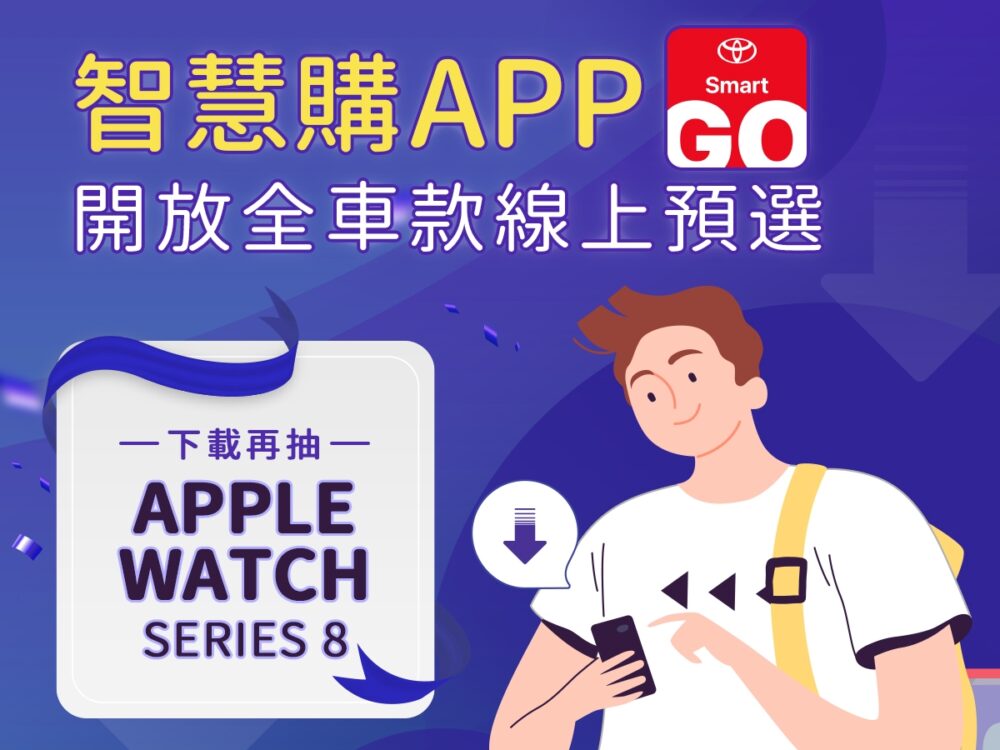 新冠肺炎期間,TOYOTA觀察到大多數顧客渴望有更完整的數位服務,因此從今年112年2月14日起,於「TOYOTA智慧購」APP開放全車系可以線上預選,讓消費者不用到營業所,也能挑到新車。顧客選定車款後,以和泰PAY支付新台幣2萬元預選金,即完成線上預選,後續銷售顧問也會主動聯繫顧客,邀約至營業所完成正式汽車買賣契約簽訂,加快整體購車流程,提升數位體驗。此外,在今年3月31日前下載「TOYOTA智慧購」APP,還有機會得到「APPLE WATCH Series 8」,詳情請利用TOYOTA智慧購APP介紹網頁(https://www.toyota.com.tw/app/smart-GO/)下載APP,或洽TOYOTA營業所了解更多相關資訊。