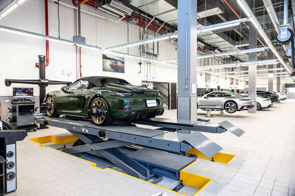至於保時捷車主交車後最關心的售後服務能量與品質,尙騰汽車集團同樣以超越原廠認證的高規格標準精心打造。服務廠區每天最多可提供高達24台以上的保養維修能量,並全數採用符合保時捷德國原廠規範的頂級維修工具設備和完善的輔助機具。包括德國MAHA滾輪式煞車測試器、空調維修廠房、MAHA埋地式雙液壓缸頂高機、義大利GORGHI 無接觸式免撬棒拆胎機、美國HUNTER HawkEye Elite 3D四輪定位儀等等。