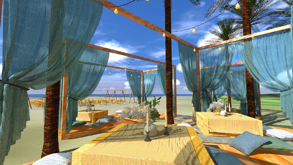 此次「LEXUS Journey by the Sea蔚藍之境」活動,LEXUS包場私人海灘,規劃海島風格發呆亭,客人可於此遠眺龜山島及晚霞,搭配手沖咖啡,享受悠閒的下午時光。而晚間則會於此海灘上,舉辦此次活動的重頭戲-浪漫海灘晚宴,邀請知名料理團隊Muzeo餐酒館為LEXUS客製主廚料理,搭配LEXUS專屬紅白酒,提供最尊榮的味蕾饗宴。搭配現場音樂及舞蹈表演,營造偽出國海島渡假氛圍。