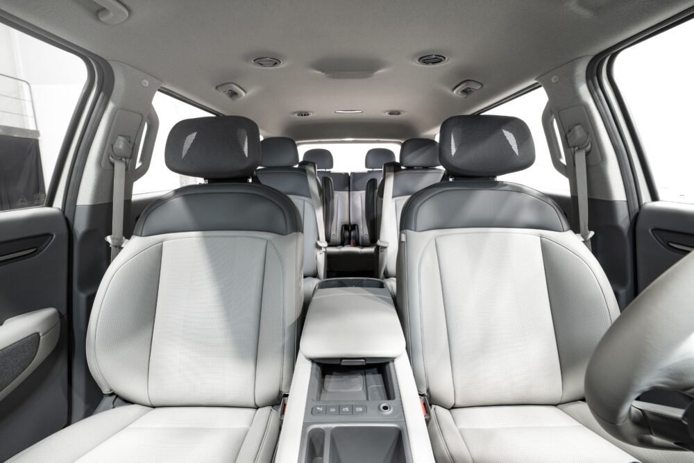 基於KIA全球電動車模組化平台(E-GMP)打造下的EV9,長軸距、低腰線和平坦的電動車架構,為所有乘員創造出寬敞舒適的空間,讓所有乘客能夠在三排座椅空間中,享受媲美家中客廳休息空間的舒適與放鬆。EV9提供六人座和七人座兩種車型,並可依照車主需求來評估選擇座椅配置和功能,以確保EV9為所有乘員提供相等的空間、舒適度和體驗,而無需將所有的注意力放在駕駛身上。