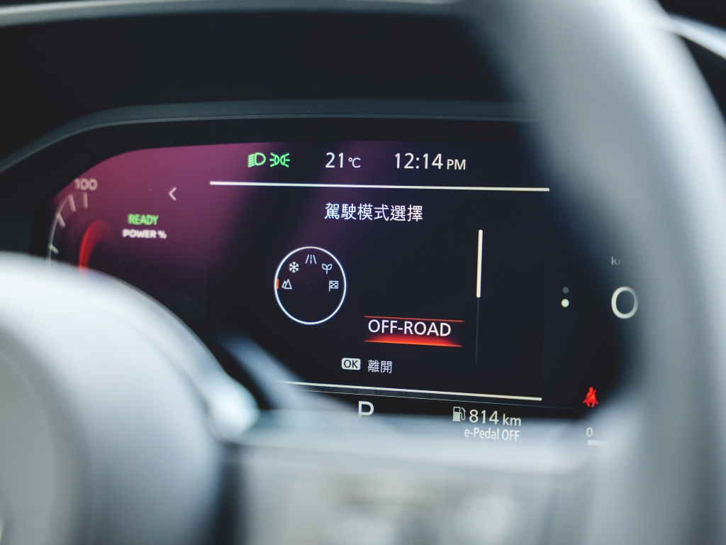 當然,X-TRAIL向來有著不可小覷的越野性能,而本次雖然沒能實際試驗,但考慮到X-TRAIL e-POWER的前後兩具馬達分別有著204hp/33.7kgm、136hp/19.9kgm的輸出(綜效213hp),加上e-4ORCE強大且即時、迅速的動力分配能力,想必脫困表現也不會差,原廠還提供了五種駕駛模式供選擇,對於喜愛outdoor旅遊的朋友來說,可以隨即選擇自己需要的模式使用,X-TRAIL e-POWER會是個很不錯的選擇。