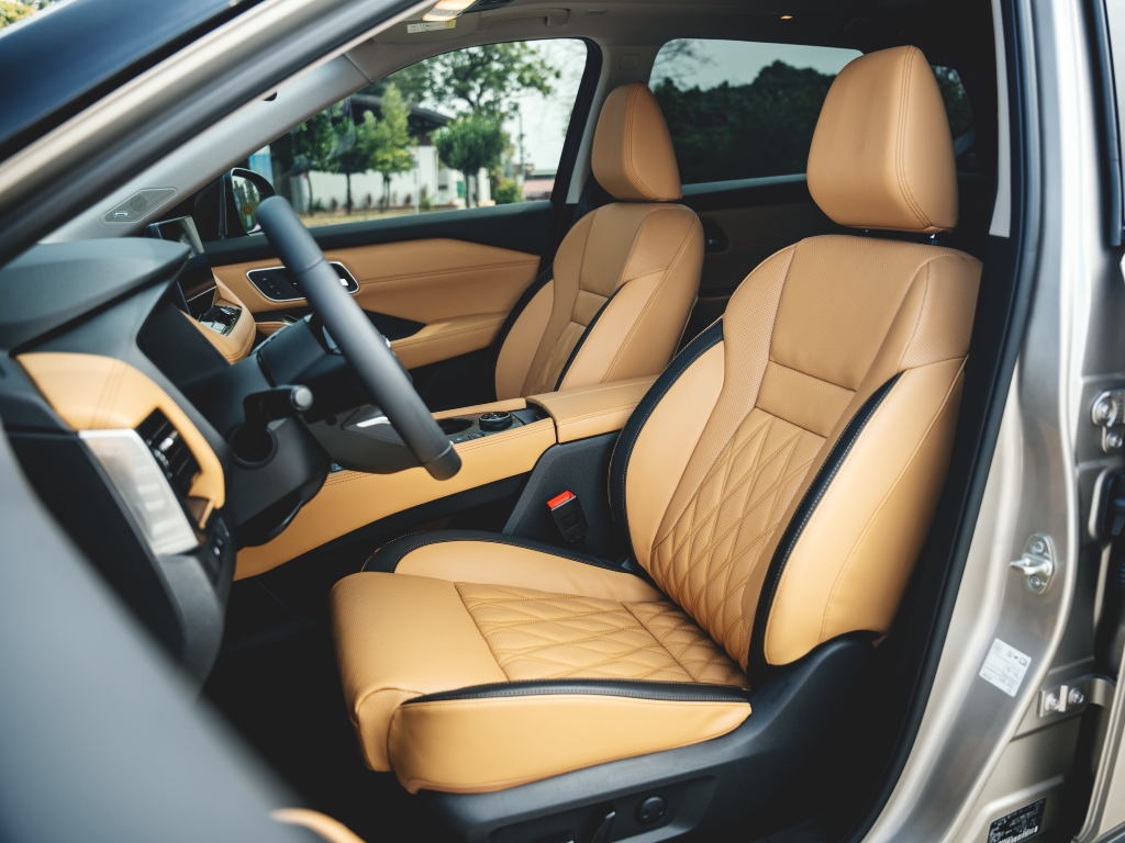 有感的配備還有10.8吋數位抬頭顯示器、12.3吋數位儀錶板、12.3吋數位影音主機、加熱方向盤、附加熱與記憶功能的雙前電調座椅、雙層隔音玻璃、BOSE音響、無線Apple CarPlay與三區恆溫空調等等,同時X-TRAIL e-POWER也跟隨品牌現行策略,提供了八種不同的外觀車色,並可選擇雙色外觀與橘色內裝,整體陳設相當有質感。