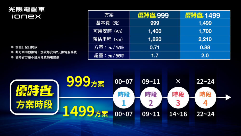 購車價格、保養維修費用常常是許多人猶豫購買電動機車的原因,為加速外送機車電動化,今年Ionex光陽電動車與foodpanda首創電動機車訂閱方案,讓foodpanda外送夥伴透過月租方案輕鬆體驗電動車。Ionex光陽電動車也提供不同的電動車款,搭配6、12、24個月不同的訂閱方案,讓夥伴可根據自身的騎乘習慣選擇適合自己的方案,租期越長,月租費越低,最低每天只要70元,大幅減少初始的購車成本,降低加入門檻;外送夥伴可依騎乘需求選擇電池資費方案,其中【優時省方案】成為外送夥伴熱門首選。