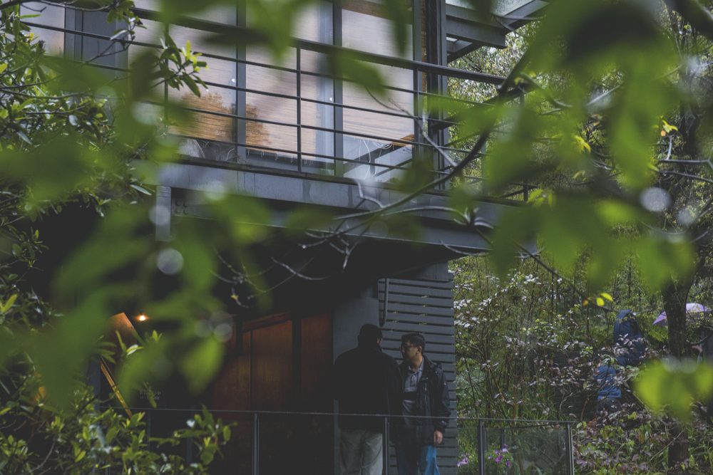時而品茶,時而聽雨,時而神遊在斗大的落地窗外那早已與大自然融為一體的建築與景致,