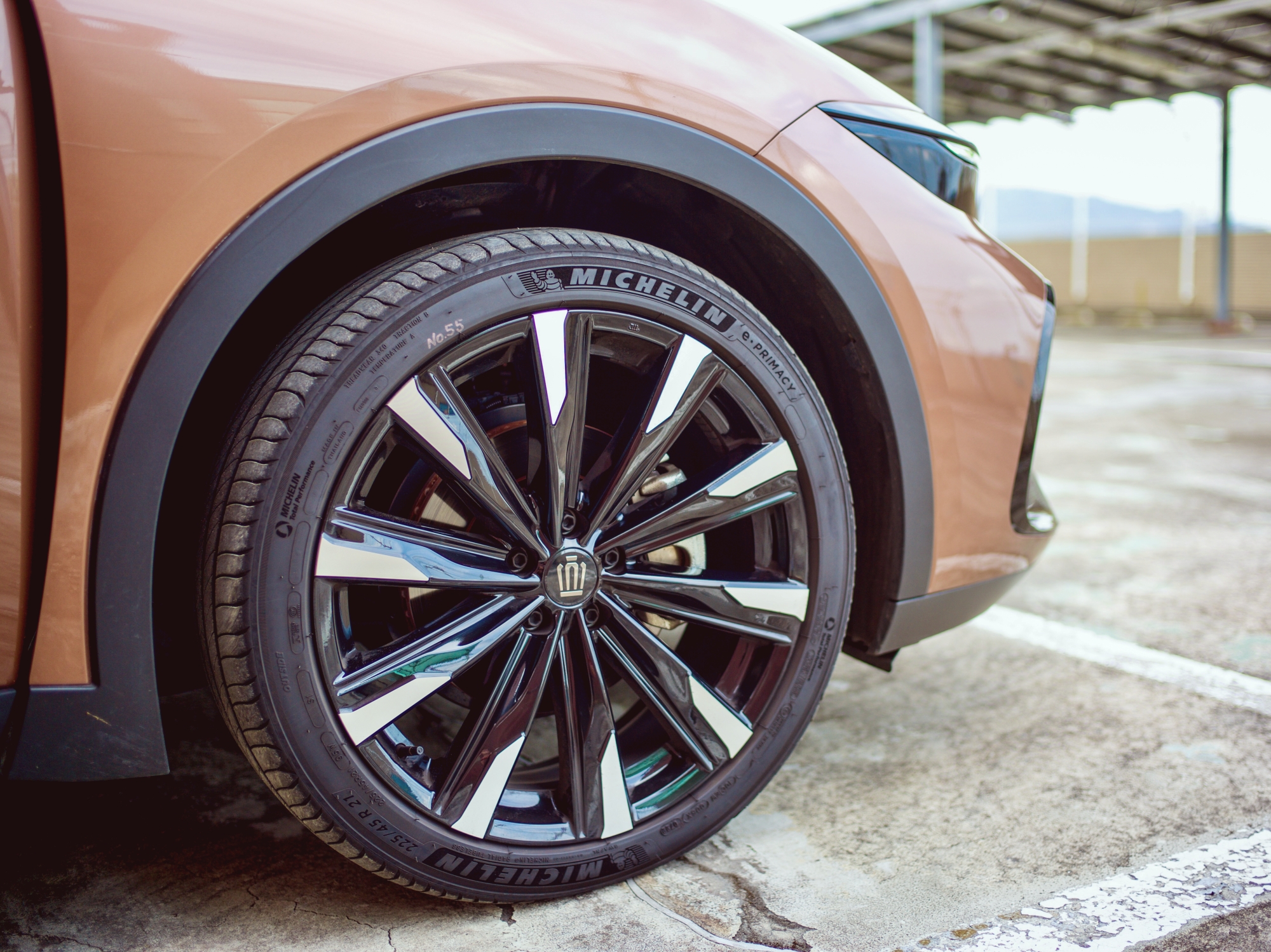 巡航的姿態也好,吸收震動、柔和的緩衝方式,甚至是通過伸縮縫、前後軸擺盪的感覺,還有那靜謐、銜接時滑順到讓人難以挑剔的2.4T油電動力線性且飽滿的中後段力道,就連6AT換檔時的震動也被調教的難以察覺,不敢說在同一個水平,但就調性和駕乘、運轉時的品質,卻有著異曲同工之妙,除了扁平比僅45的21吋胎的吸震實在不太好…