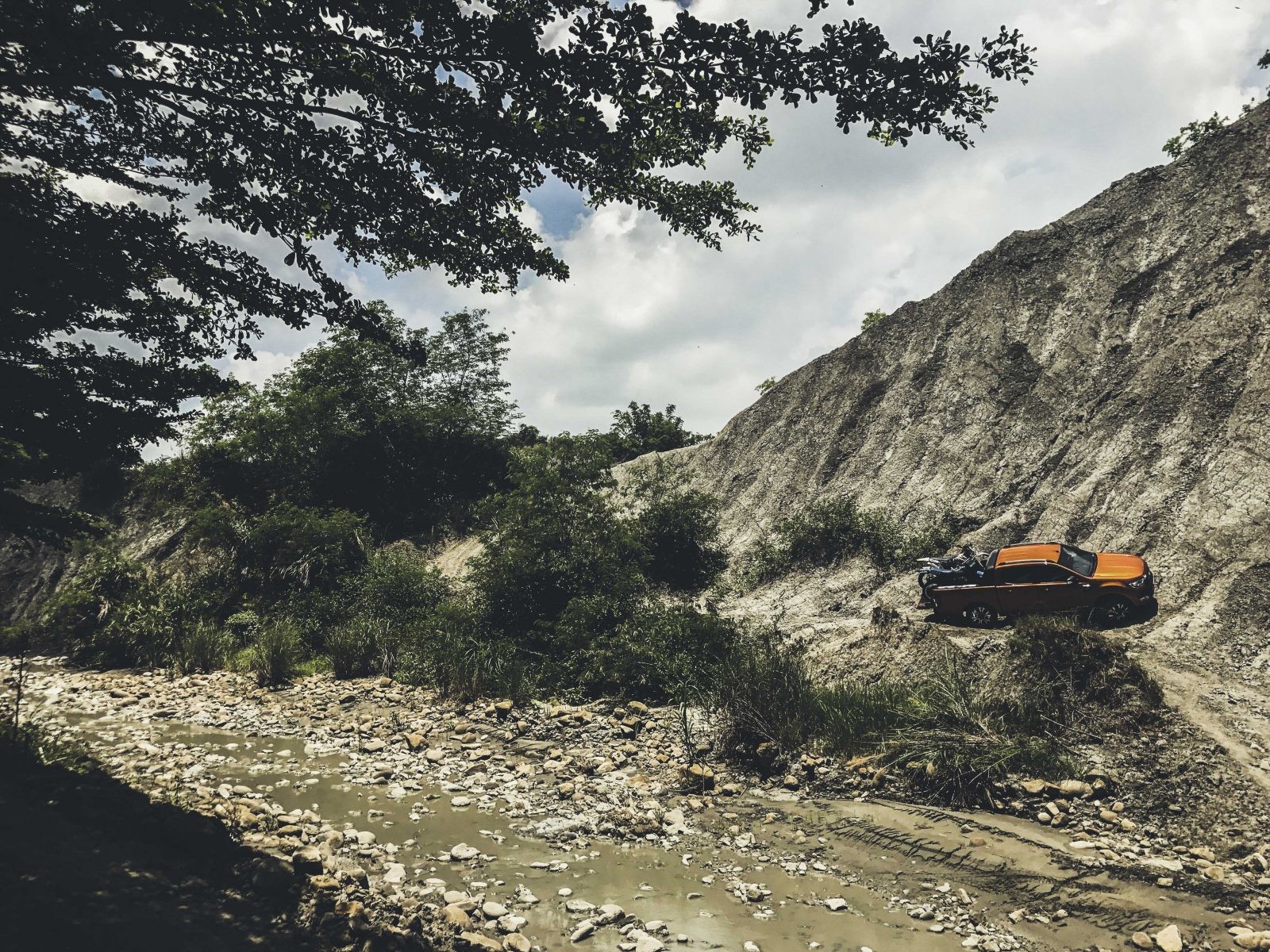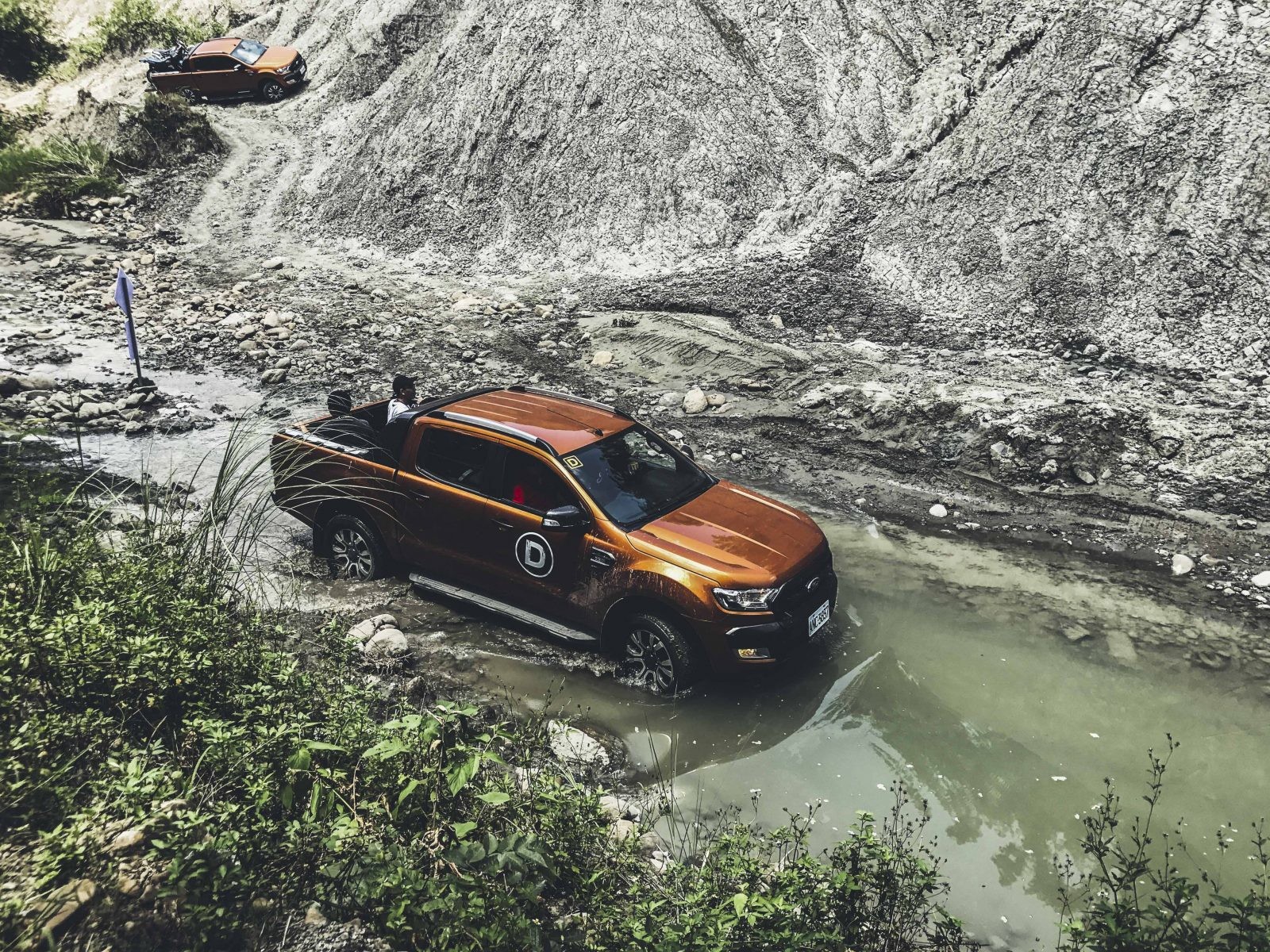 第二關「亂石區」。大小不一、或密集、或稀疏的石頭散佈,這是典型的溪石吸附地形,Ford為了保存自然生態,並無刻意擺設,通過時,以低速四驅(4L)二擋通過,不疾不徐,低速高扭緩慢過去,越野藝術在於油門的控制,若即若離的油門,讓我想到了交女朋友這件事,施加太多壓力,她會不聽使喚,放鬆太多,使狀態擱置,控制油門,又何嘗不相似呢?回過頭來,此模式能清楚能感受溪石崎嶇以及“Ranger”毫無負擔的表現,你可別擔心底盤了,“Ranger”底盤可是使用了八種特殊鋼材打造,部份鋼材擁有超高強度,部分擁有超強韌性,完美搭配之下,使車子展現了最佳的車體力學。