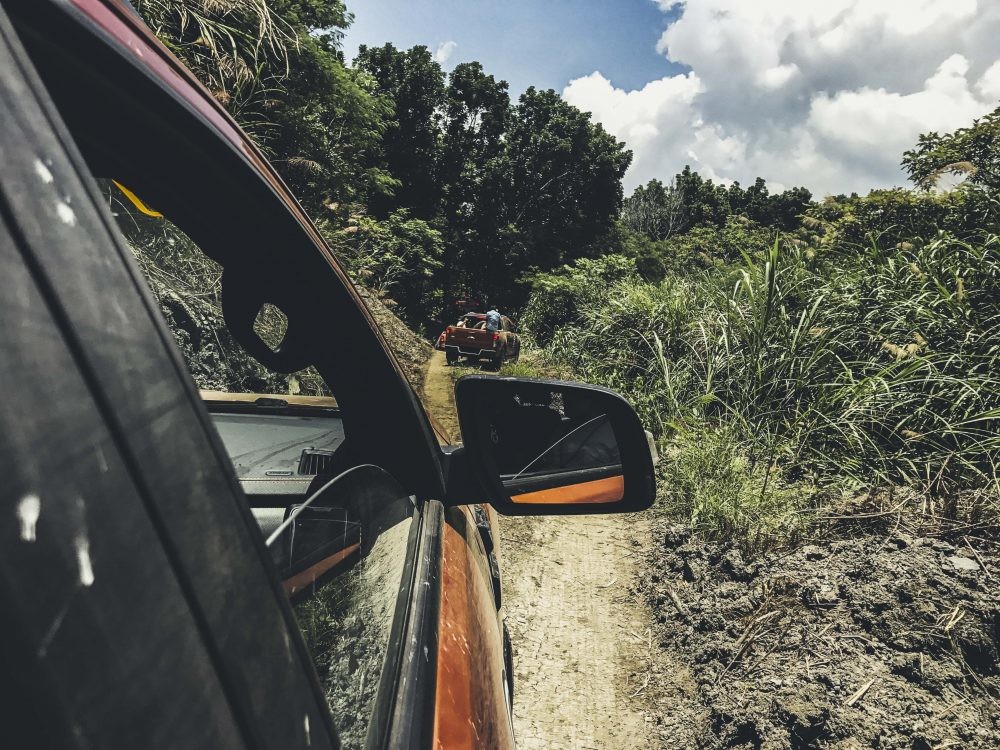 第四關「V型溝」,兩側為原始林道,中央下陷處呈現為V型泥濘之地,這關的訣竅就是,慢過,就像說話一樣,有信心就能夠穩當、以緩慢的口吻吐出,這關的越野也是,僅需以二檔以硬漢搖擺的姿態突破,若不小心踩太大力也沒關係,即便後斗載著十個渡邊直美也不至打滑,因為我們有TCS循跡防滑控制系統嘛。