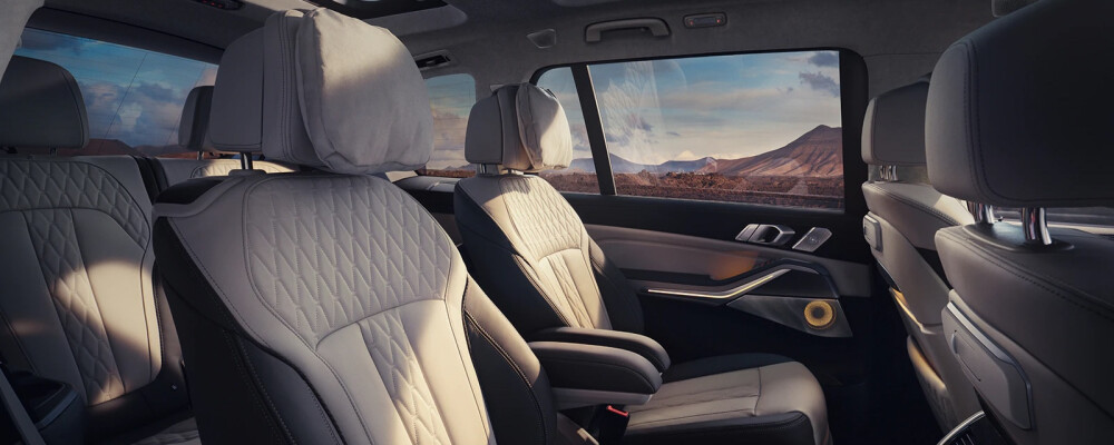 長達3,105mm的旗艦軸距提供七人乘坐的舒適空間,第二排座椅具備電動椅背可調與最高可達14.5cm的電動前後滑移功能。15種色彩選擇的全新X7專屬環艙氣氛燈、BMW Individual Fine-Wood淺色梣木紋飾板、BMW Individual Merino頂級真皮材質內裝,水晶中控套件與全新設計的排檔操作介面,大幅釋放了座艙內中央鞍座區域的空間。