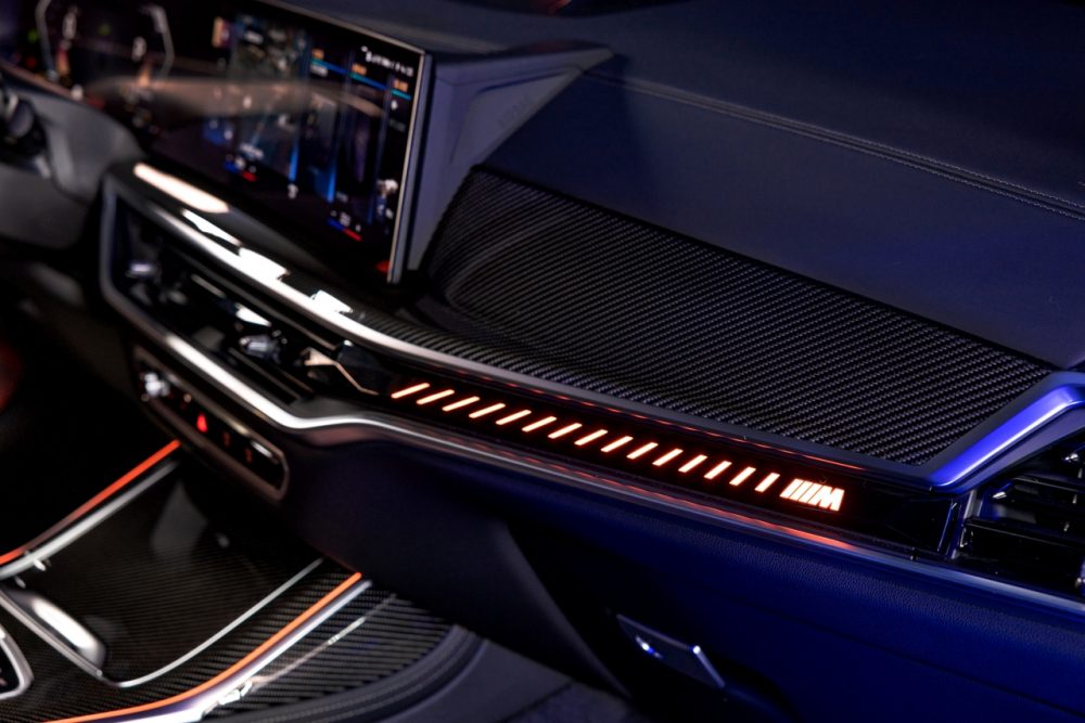 Sensatec皮質儀錶檯,結合12.3吋虛擬數位儀錶與抬頭顯示器、BMW手機數位鑰匙2.0和無線智慧型手機整合系統,中控部分14.9吋懸浮式曲面螢幕、BMW iDrive 8.0介面、最大輸出可達1,475瓦且擁有20具揚聲器的Bowers &Wilkins鑽石高傳真音響系統與可讓第二排與第三排車室獨立調整座艙溫度的五區恆溫空調,更讓X7的全車乘員都能享受絕佳的音樂饗宴、自由選擇最舒適的座艙溫度。
