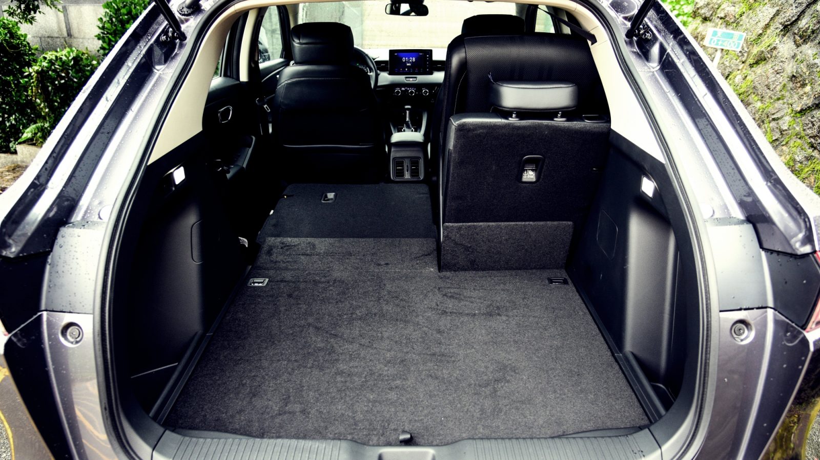 沒錯,改成俗稱“斜背”的車尾線條,就是這一代HR-V最大的變化,讓HR-V從原本的都市休旅風格,轉變成了都市“跑旅”,用比較容易理解的思維就是MAZDA CX-3與CX-30的區別。這樣的改變讓HR-V曾經引以為傲的空間表現打了折扣,光從數據上看,行李廂容積硬生生的從舊款的437公升減少到新款的390公升,後座頭部空間與視野也較上代有明顯壓迫感,並且連帶影響到行李廂的高度運用。
