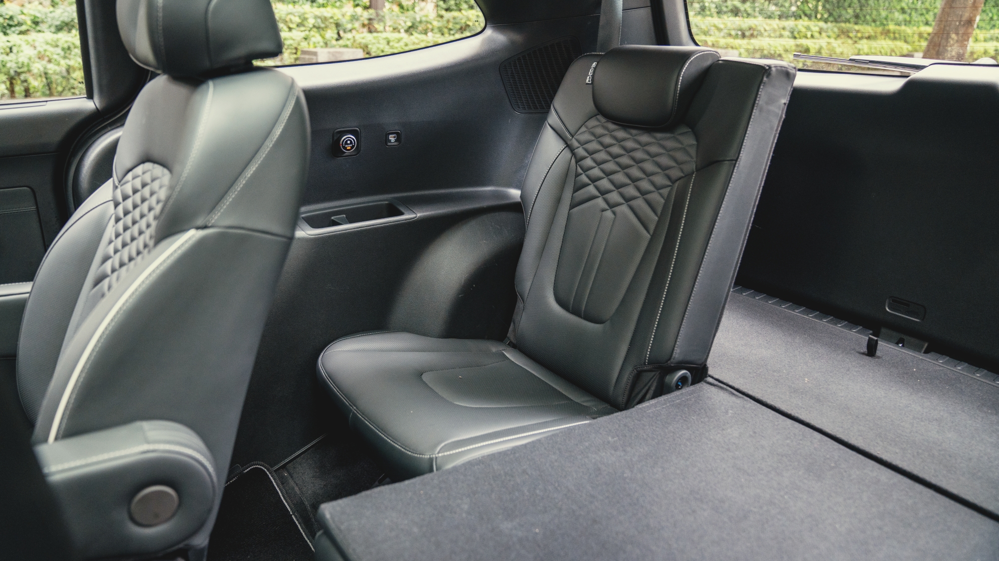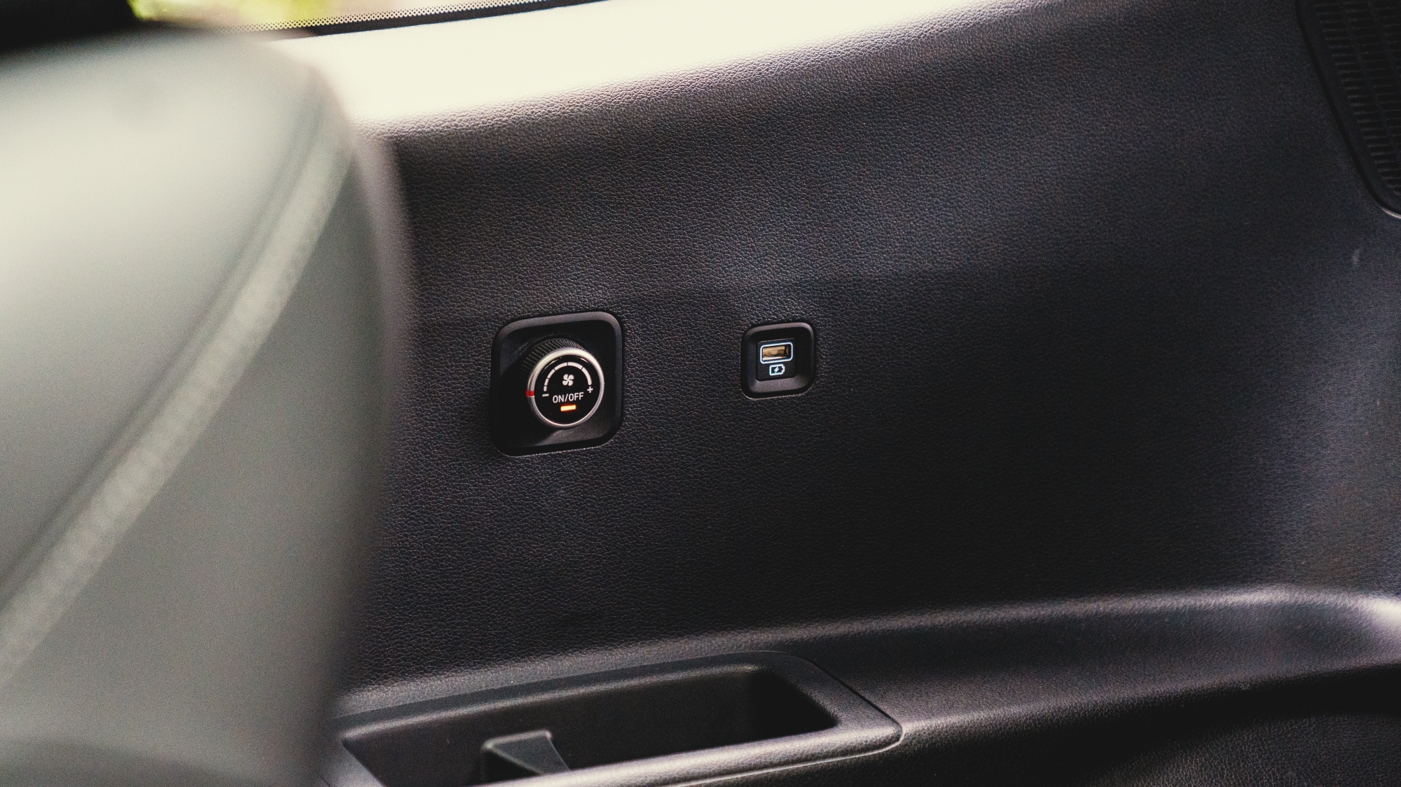所以,如果你已經確定你有“經常性”的三排座需求,那相比所謂的5+2,CUSTIN的第三排自然是顯得更充裕及舒適,配合第二排的“禮讓”之後,可以給出一個讓腿部近乎伸直的區塊,但可惜腿部外側(也就是右座的右側、左座的左側)有受到後輪拱的一些壓迫,兩側的硬塑料鋪陳也相對多了一點,但整體表現已經是可圈可點,頭部也不會貼在後擋玻璃上,加上獨立的空調風量調整與出風口、充電孔,還有那兼具人體工學且厚實的座椅,坐上成人絕對不是問題,我這趟旅程也有實際載著一位大人(還是長輩)從台北開到了苗栗,對方睡得香甜、下車精神抖擻。
