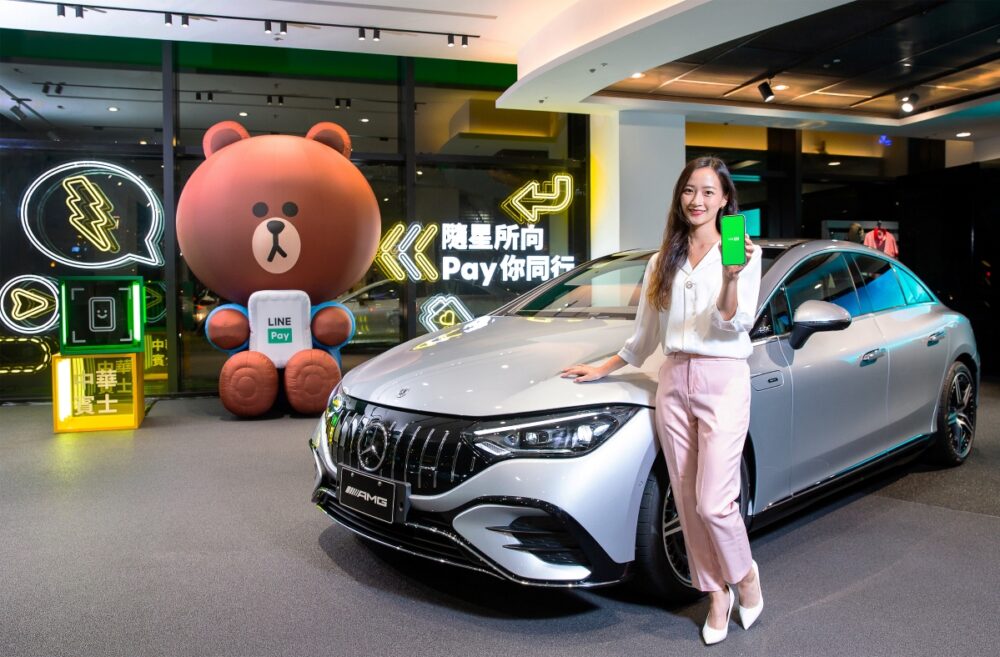 中華賓士與LINE Pay為了此次的合作,更推出了「隨星所向 Pay你同行」主題特展!高2米8的「LINE Pay熊大店長」將首次亮相,進駐中華賓士內湖旗艦據點!展區以霓虹燈管裝飾展區,傳達車迷將在熊大店長的帶領下,感受中華賓士以車主需求為核心所帶來的智慧科技與豪華電能未來。預計中華賓士內湖旗艦據點也將成為最時尚熱門的打卡地點!後續熊大店長將至中華賓士台中、關渡等據點巡迴展出,喜好LINE Pay熊大店長的你千萬別錯過限時展出的時間!