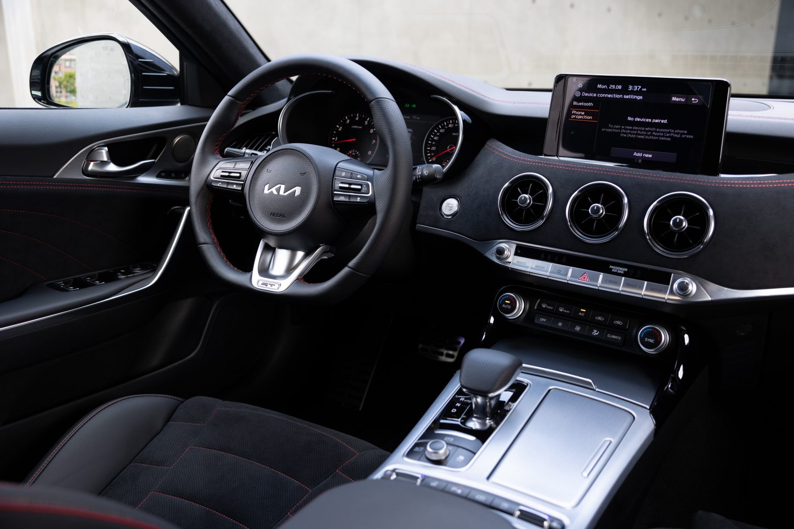 The Stinger具備形質俱佳的豪華旗艦車艙格局,2.0 GT-line及3.3 GT AWD車型搭載8吋懸浮式觸控螢幕與7吋全整合智慧型數位儀表板,並支援Apple CarPlayTM與Android AutoTM無線連接,搭配頂級音響品牌Harmon®/Kardon®環場音響系統,讓全車乘客沉浸在劇院級的聽覺饗宴中。The Stinger科技化車艙,另搭載了手機無線充電、通風加熱座椅與引擎遙控啟閉系統等貼心配備,展現豪華GT轎跑對車主的尊榮款待。此外,車主還可選配燦黑跑格化內裝套件,以奢華且性能味滿點的Nappa麂皮內裝,搭配賽道氛圍強烈的紅色安全帶與紅色車縫線,彰顯為性能而生的GT精神。