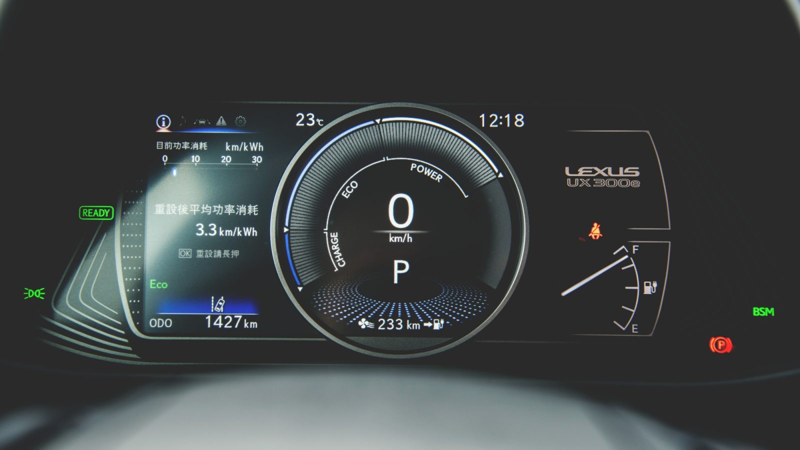 當然,以上只是我的猜想,但不可否認的是,UX300e在身為一輛純電動車的同時,依舊是一台不折不扣的LEXUS,LEXUS絲毫沒有想要過分強調UX300e的電車身份,所以,可以看到UX300e那幾乎與常規UX完全一模一樣的內外觀設計,就連通常會大做文章的液晶儀表板,豐田也不過就是把油槍圖示改為了象徵電氣化的二柄插頭來聊表心意,同時內裝鋪陳也沒有任何的“包裝”,依舊維持UX車系原有架構,我記憶最深刻的居然是那豪華Perforation皮革包覆的電動座椅,坐起來真舒服。