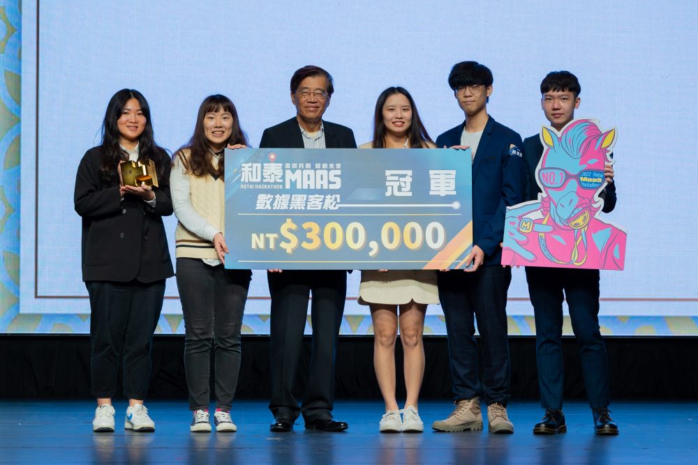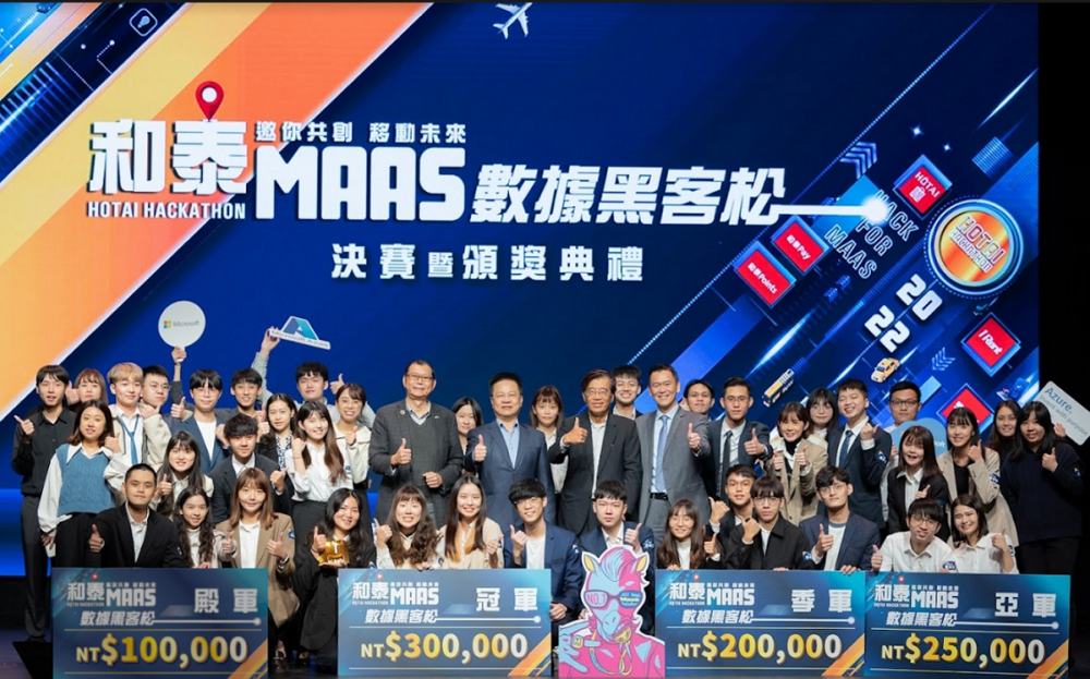 和泰集團近年來積極推展MaaS (Mobility as a Service)相關服務與文化,期望能完美滿足每一位顧客在「移動過程」中的各種需求,今年更首次舉辦「和泰MaaS數據黑客松」競賽,以「結合智慧科技與共享經濟」為主軸,鼓勵全台青年學子,運用和泰釋出的70萬筆珍貴商業數據,搭配AI、雲端應用等科技,分享心中移動願景。歷經近半年賽程,最終由10組頂尖隊伍自183組中脫穎而出,12月17日舉辦決賽暨頒獎典禮,十強菁英團隊齊聚三創生活園區,為實現稱霸全國的夢想全力奮戰。最終由「咕嚕小隊」的「DTD共享計程車」問鼎冠軍寶座,抱回30萬獎金、隱藏版專屬NFT及獎盃。