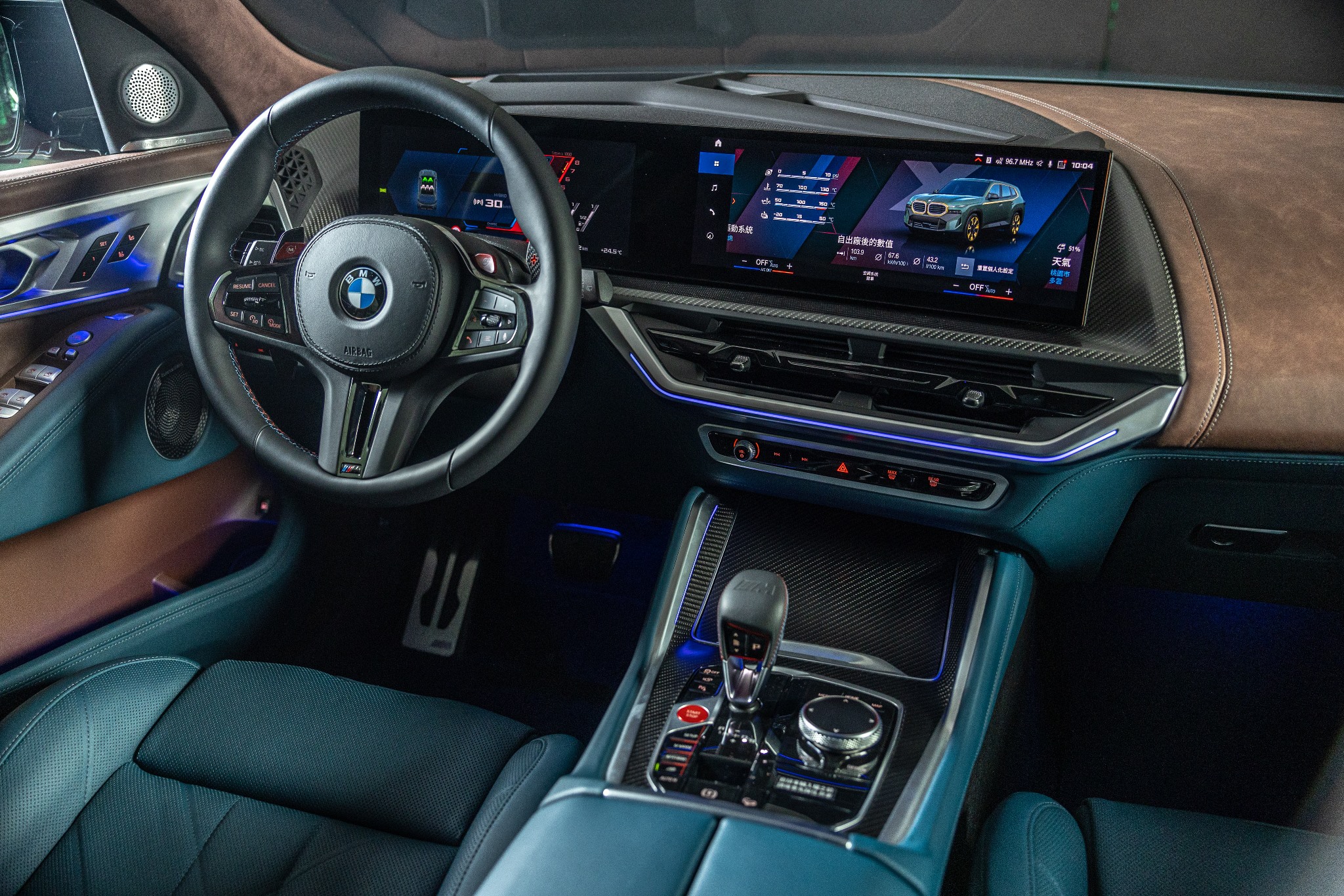 高調前衛的外觀之下,全新首創BMW XM座艙更為車主與乘客打造出如城堡般的奢華私密空間,BMW Individual Merino真皮包覆的M雙前座跑車座椅含記憶、通風及按摩功能,前後座則皆配備加熱座椅,讓乘客無論是在何種季節與氣候皆能擁有舒適的旅程;在豐富的內裝選擇中,首次應用於專屬BMW XM的復古風格真皮材質,以獨特製程及加工技術保留皮革原生紋路與色塊,完美地包覆車門內側飾板及儀錶檯,自然的紋理結構與色澤質感刻劃出極具個性的魅力風格。