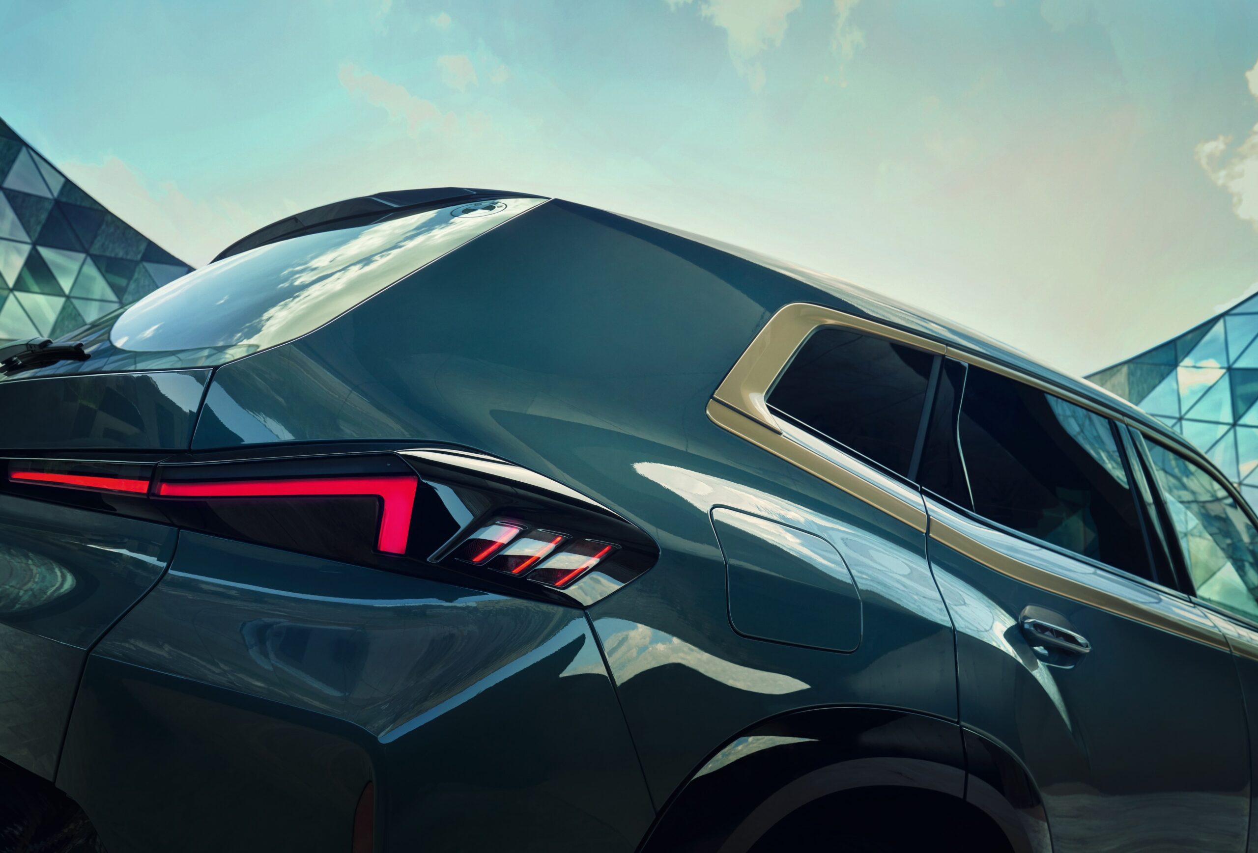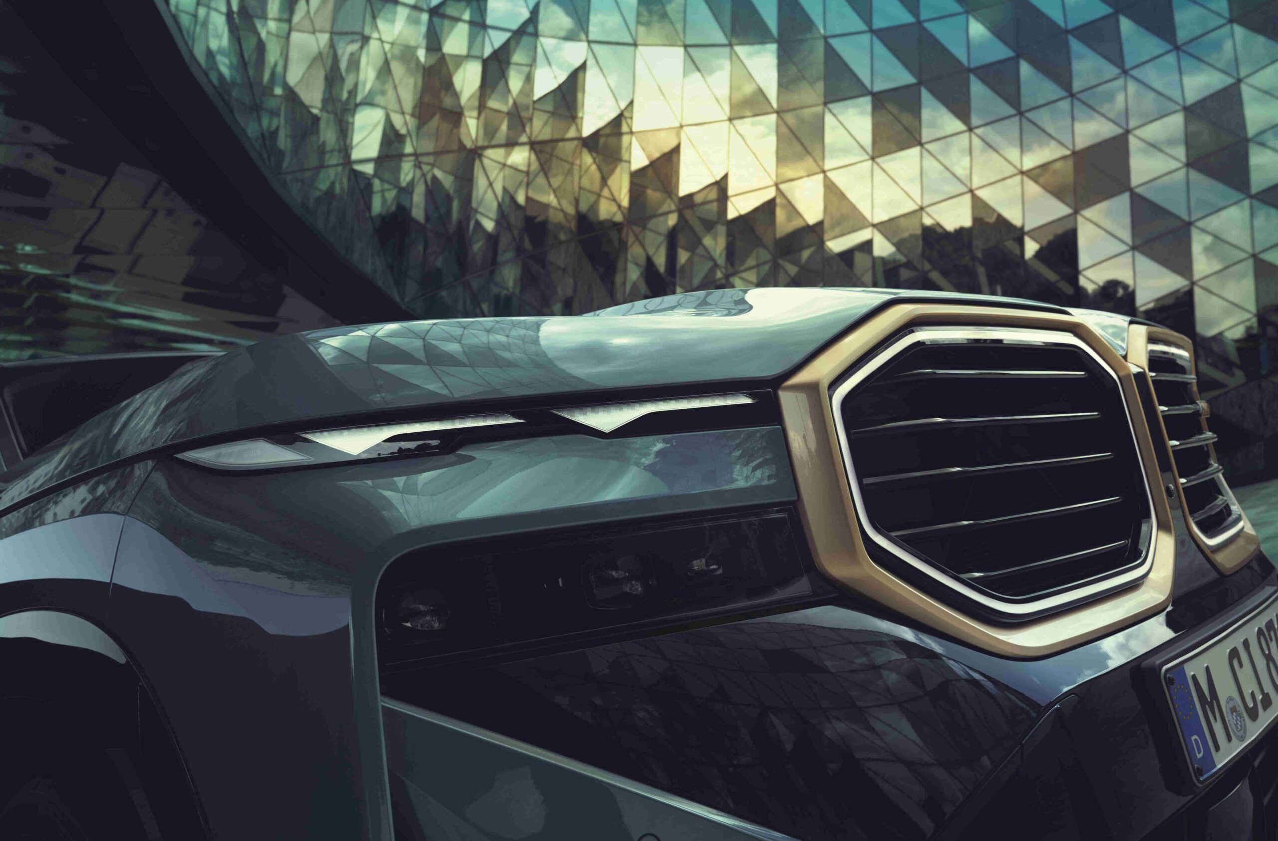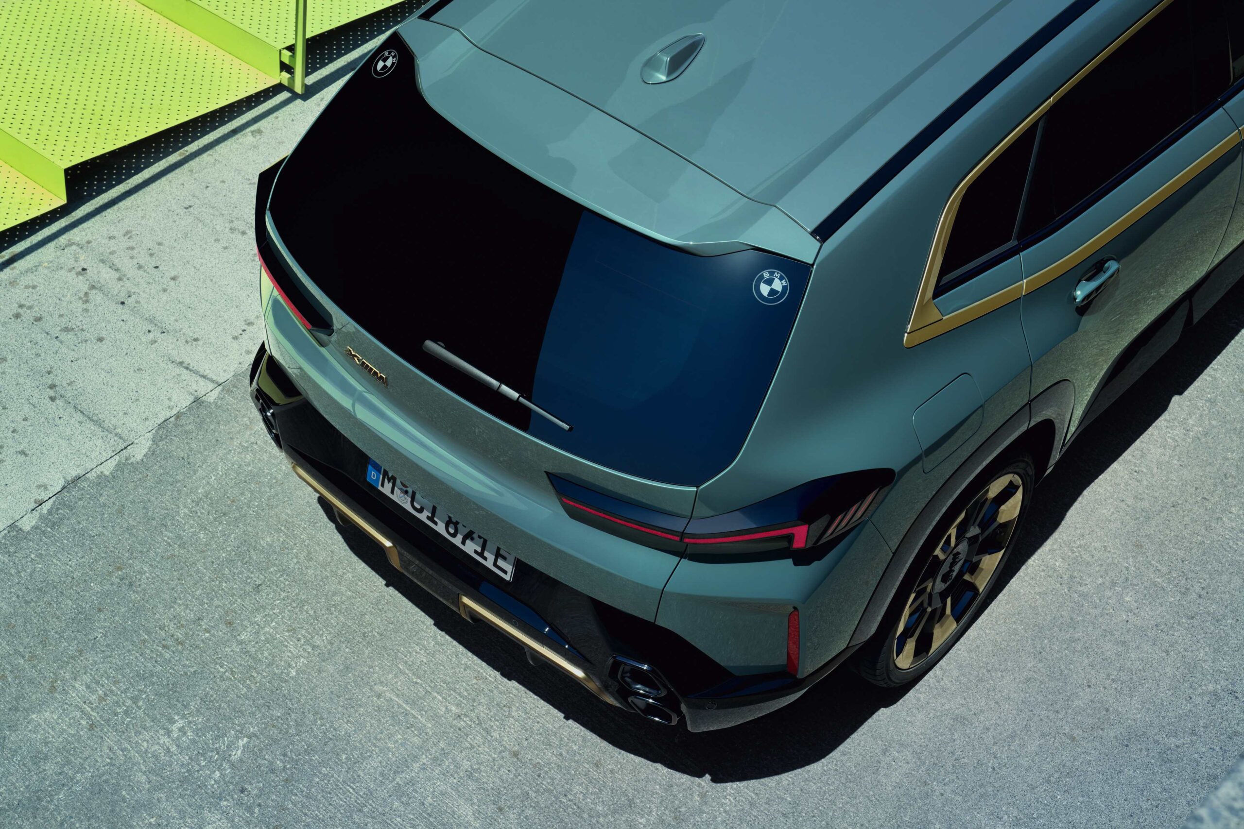 BMW XM可以看見類似於立體派多邊形幾何構成的的車內空間設計與外觀設計,搭配車身現代新穎的折線與光影設計,將BMW強調動感前衛的新一代設計語言,和BMW引以為傲的性能動力嶄露無遺。全新首創BMW XM最吸睛出眾的特色之一就是霸氣而寬闊的雙腎型M橫柵式水箱護罩,以緞金色邊框圍繞搭配BMW LED環型飾光燈條,展現BMW XM強烈的磅礡氣勢與豪華跑旅領袖之姿。同樣以緞金色打造的車側風格飾條,自前輪拱上方延伸至車尾與窗框相接,承襲了最經典的BMW M1車身線條設計元素,標準配備全車系尺寸最大的專屬23吋M星輻式923 M型輪圈,搭配中央輪圈蓋上黑色立體BMW字樣造型,氣勢非凡無可匹敵。突破現有BMW車系的廠徽設計,BMW XM以雷射雕刻方式將雙BMW Logo放置於後擋玻璃左右上緣,目的即是向經典的BMW M1車尾造型致敬。