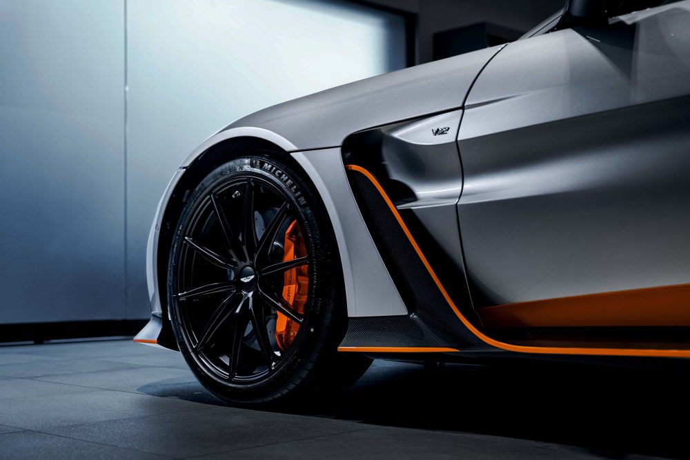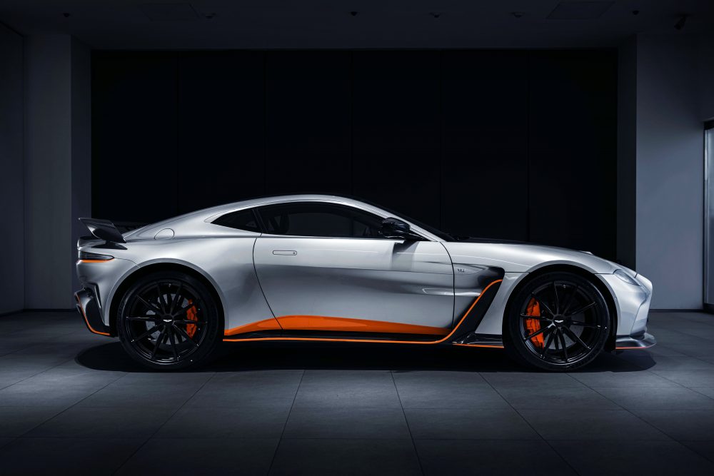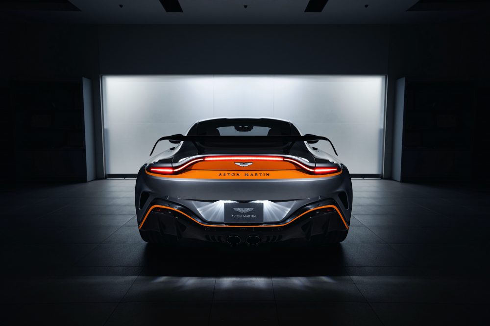 ASTON MARTIN V12 Vantage是有史以來動力最強大的Vantage車款。搭載V12 5.2升引擎,可輸出最高馬力700PS、最大扭力753Nm(1800rpm To 6000rpm),最高時速為322KM/H,0-100KM/H僅需3.5秒。得益於強大的動力設定與輕量化的車體結構,V12 Vantage的馬力重量比僅2.56KG/PS,與V8 Vantage版本相比,增加了20%以上。加寬約40毫米的車身設計,用來搭配為了彎中動態與穩定性所優化的寬體底盤,全新寬體設計廣泛使用碳纖維材質,同時具備引人注目的空氣動力學套件。視覺焦點的尾翼,甚至可提供高速行駛下204KG的最大下壓力。