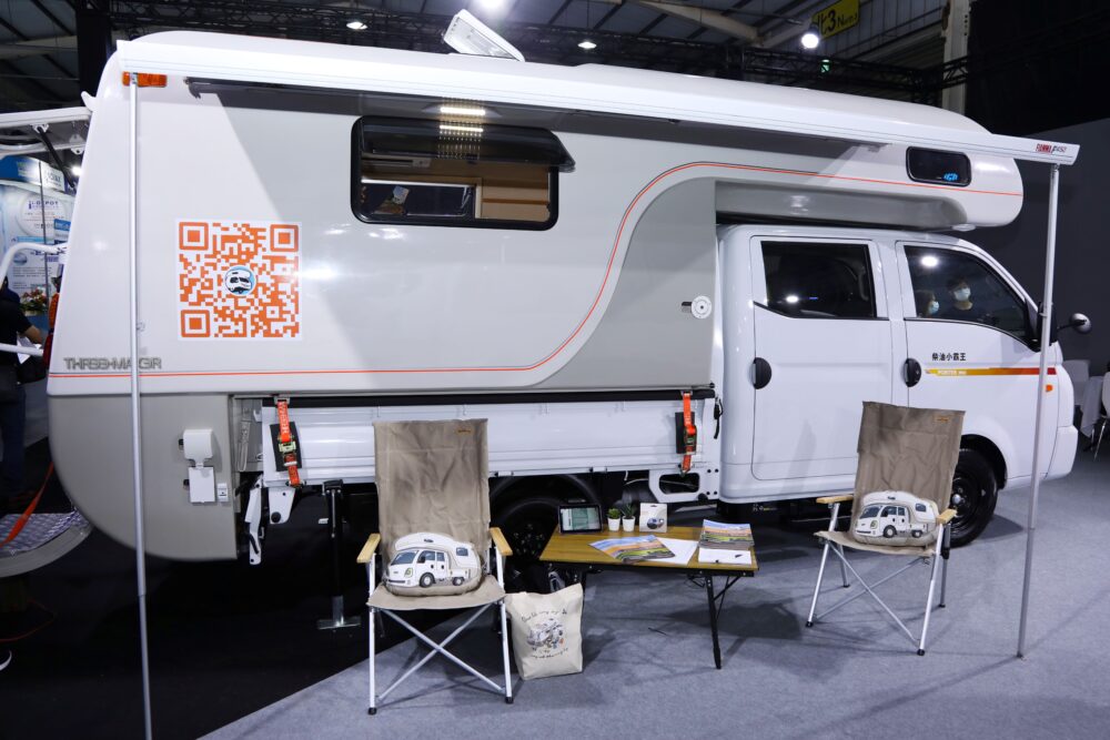 近年市場上三噸半級熱銷冠軍Porter Pro,憑藉舒適安全車室座艙、便利操控的5速手自排,搭配6期環保2.5L柴油渦輪引擎、同級最長10.3尺大貨床與領先同級1,575公斤載重力,加上多元的單廂、豪華單廂、雙廂六座完整產品線,遠勝對手年銷超過4,000台;現場展出Porter Pro承載式露營車,以雙廂機型大貨床結合承載式露營車廂,前艙配備豪華雙人床,後艙設計四人對座沙發、組裝式餐桌及衛浴空間,打造可容納多人的移動機能空間,是喜愛戶外山林的露友最佳CP值的舒適露營車選擇。