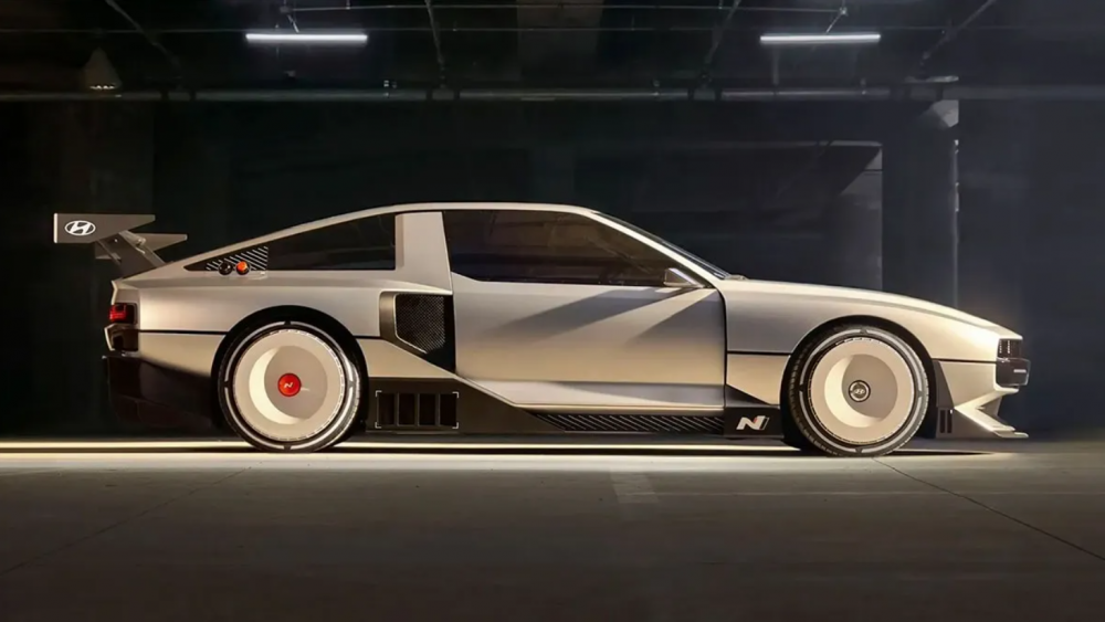 為了展示HYUNDAI品牌精神,一場以設計為出發點的華麗視覺饗宴就此展開,70年代風格運動車的楔形車體,不同於現今設計潮流強調一體式的設計。這輛概念車有著多層次視覺佈局、腰線以上誇張內收的車體傾角、難以實現量產的寬體,和前輪之後車底深色空力套件創造出俐落、些微懸浮的未來感,設計師只需畫一條線就能完整呈現絕佳辨識度的車體輪廓,可以說是頂級設計師最高維度的精采表現,更勾起人們對70年代未來風格的想像。