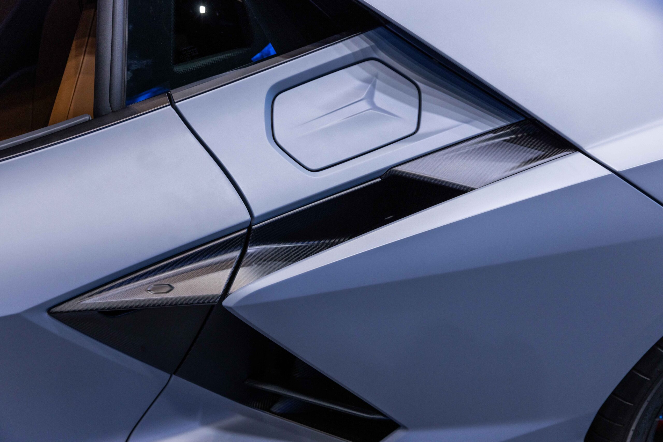 Revuelo將Lamborghini未來的設計方向引領至今日之路,保有Lamborghini純正設計基因,奠定全新風格元素。它的輪廓線條延續Lamborghini V12傳奇經典,並以突破性的比例傳達下一世代超級跑車的視覺張力,開闢因應電氣化演進所帶來挑戰的設計語言。其靈感啟源於航太科技要素,以銳利的雕塑線條和平滑的對應弧線,營造宛若高科技戰鬥機的樣貌。立體刻劃的車身線條環繞駕駛座艙,由車頭延伸至車尾六角形的排氣尾管,刻劃出動感工藝巨作。