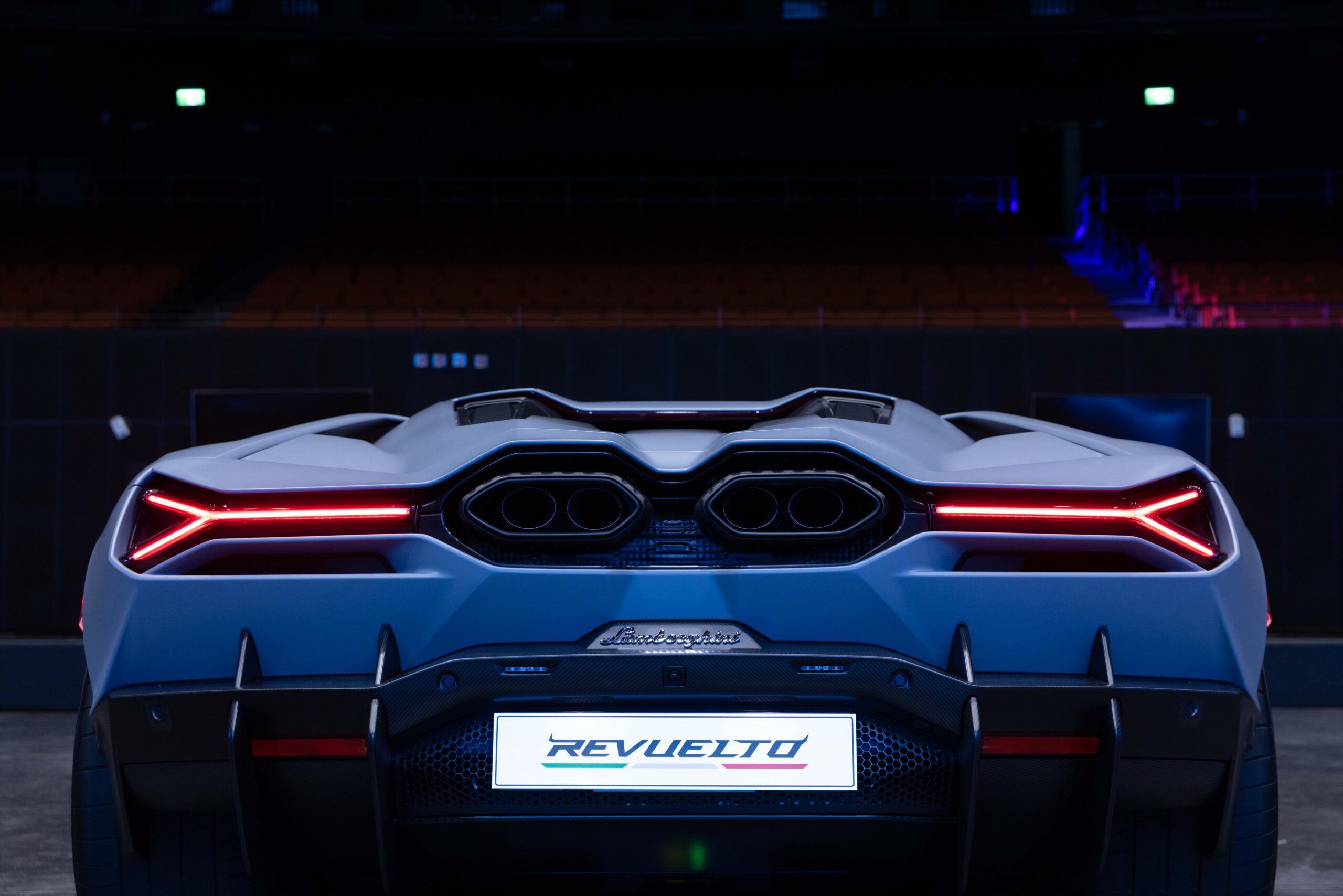 Revuelto以前所未見的動力架構、創新設計、高效空氣力學以及全新的碳纖維車臺結構概念,為動態性能和駕駛樂趣樹立嶄新標竿,其動力心臟是一具重新設計的6.5升V12自然進氣引擎,以 180度反向放置車身中後,與三組電動馬達相輔相成,強大的動力輸出成就優越的重量功率比。每升127 CV的內燃機引擎與兩個位於電動前軸的馬達協同運作,第三組馬達則與位於引擎後方首次應用於Lamborghini V12車型的8速雙離合變速器連結,三組電動馬達由位於中央馬鞍的高比功率 (> 4500 W/kg) 鋰電池供電,並支援純電模式行駛。