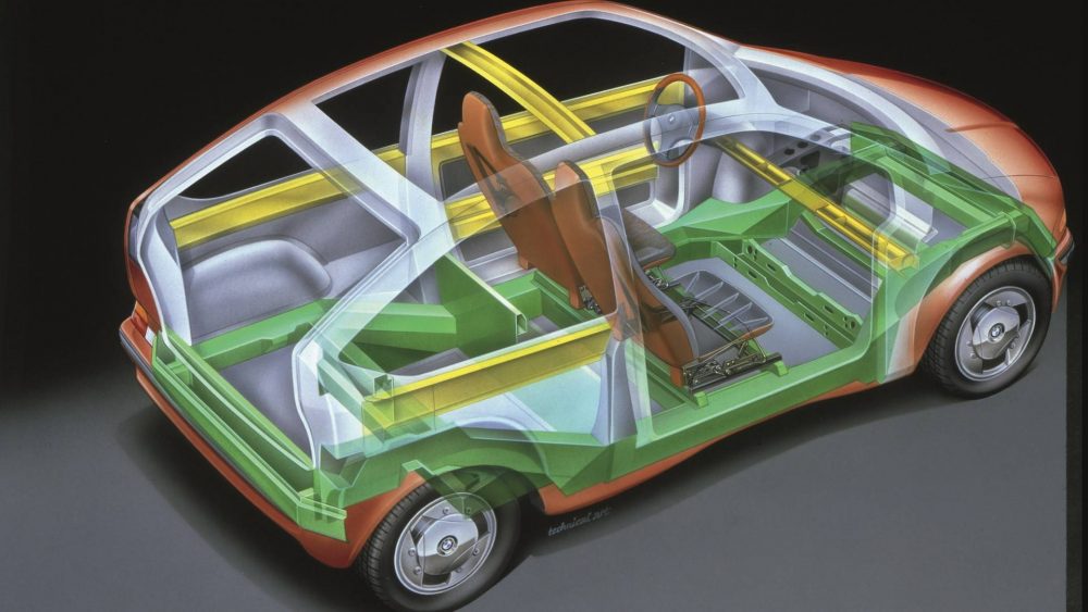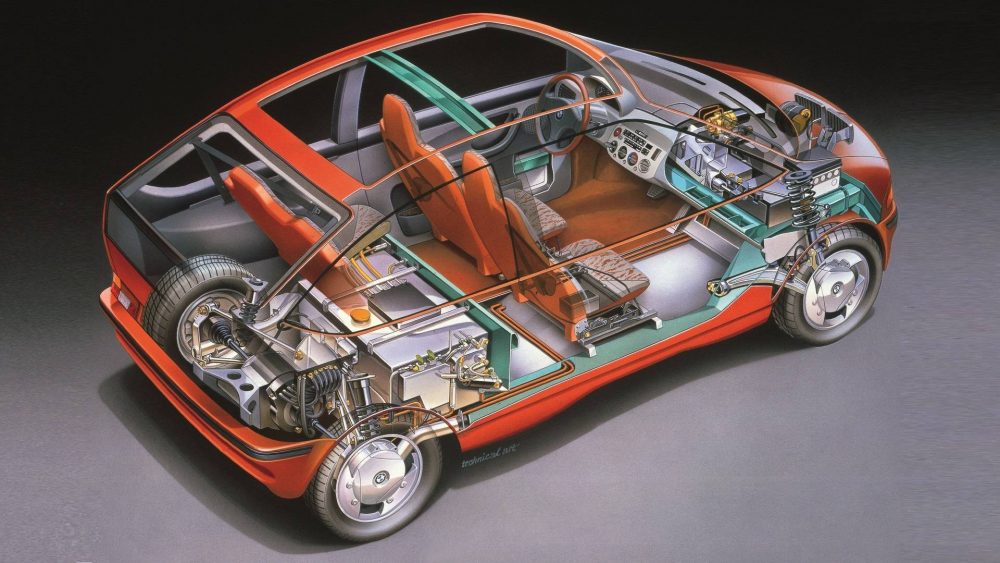 但其實早在1991年的法蘭克福車展上,BMW就展示過一輛名為“E1”的純電概念車,