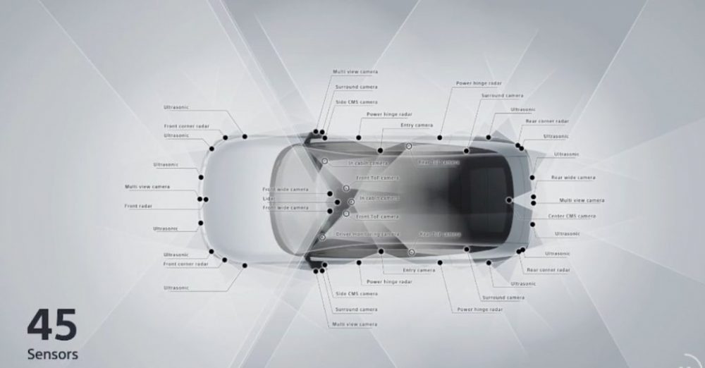 擁有先進空氣力學的AFEELA概念車,其簡約外型凸顯了車頂的光達感測器,並且全車共有多達45處的傳感器(包含鏡頭及各式感測器),不難想像這樣的配置是為了未來交車時,能符合Level 3半自動駕駛認證的打算。不過HONDA雖然為世界第一家擁有搭載Level 3技術車款的車廠,卻不如稍後推出的賓士通過聯合國UN-R157和德國、加州等地法規認證,而是僅通過日本國內認證,實際搭載的HONDA Legend也沒有大規模量產,僅於日本國內生產100輛。並且有消息指出,HONDA內部評估成熟Level 3半自動駕駛技術的研發時程可能推遲至2029年。