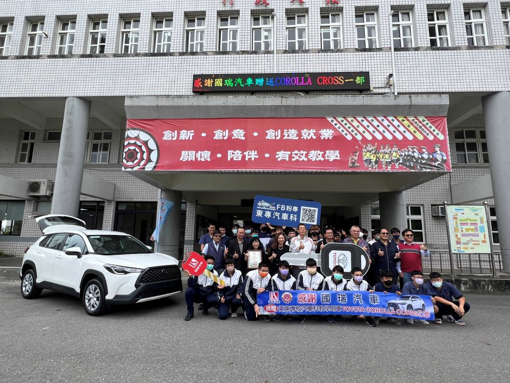 國瑞汽車是日本TOYOTA及HINO,唯一合法授權在台生產的製造廠,已成立38年,今年已經邁入第39年,一路承襲著豐田生產製造的信念,以安全、品質為最優先,並以製作出讓每一位客戶都滿意的車輛為目標而努力。由國瑞汽車古屋敷總經理所率領的團隊,於2022年的一系列捐贈活動,一路從台灣頭(泰山高中)送到台灣尾(屏東高工),共捐贈了COROLLA CROSS 4台、COROLLA ALTIS 7台及核心零組件15套給17所大專院校與技職學校,貫穿整個台灣;今年更首次捐贈車輛至宜蘭花東地區,盡可能將有限的資源送到每一個需要的地方。捐贈同時也觀摩見證各學校活用捐贈車輛、核心零組件的教學成果。