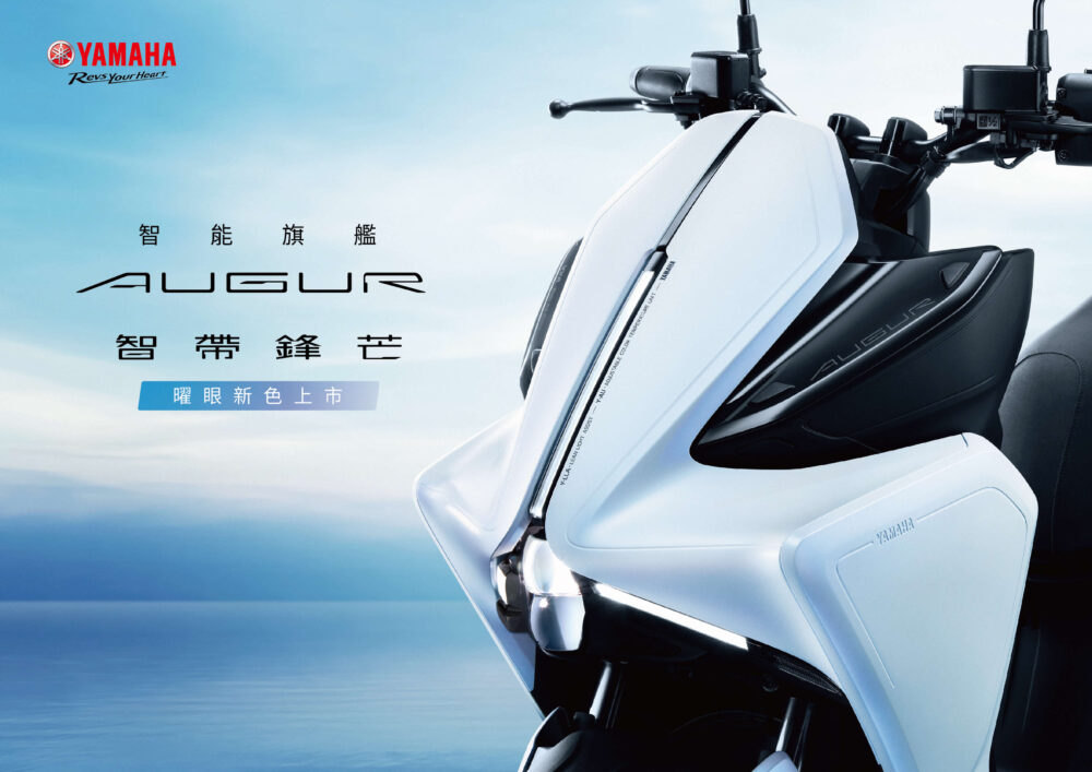 YAMAHA於2023年3月再推出「AUGUR」曙光白特仕版,即日起展開預購。智能旗艦「AUGUR」自2022年12月發表,上市3個月內預購破4,000台,為滿足追求更高質感的消費者, 推出「AUGUR」曙光白特仕版,以「The acme to resonate the future」的概念,採用嶄新車色技術,呈現更細膩的視覺體驗。