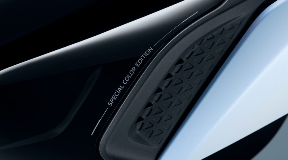 以匠人工藝手法製造,讓車色呈現高級的液態金屬質感印象,在不同光源下穿透底層白色,產生藍色偏紫的光影流動變色效果,如同清晨破曉的第一道曙光,在天色白裡透藍的循序變化下,畫開新的序幕,以先進技術傳達極致純綷的未來世界觀。除此之外,輪框及坐墊邊緣以低明度的霧藍選色設計,並搭配燻黑尾燈殼及特仕版雷雕字樣,整體配色層次質感再提升,展現智慧、獨特的品味。即日起可至全台YAMAHA販賣店預購。