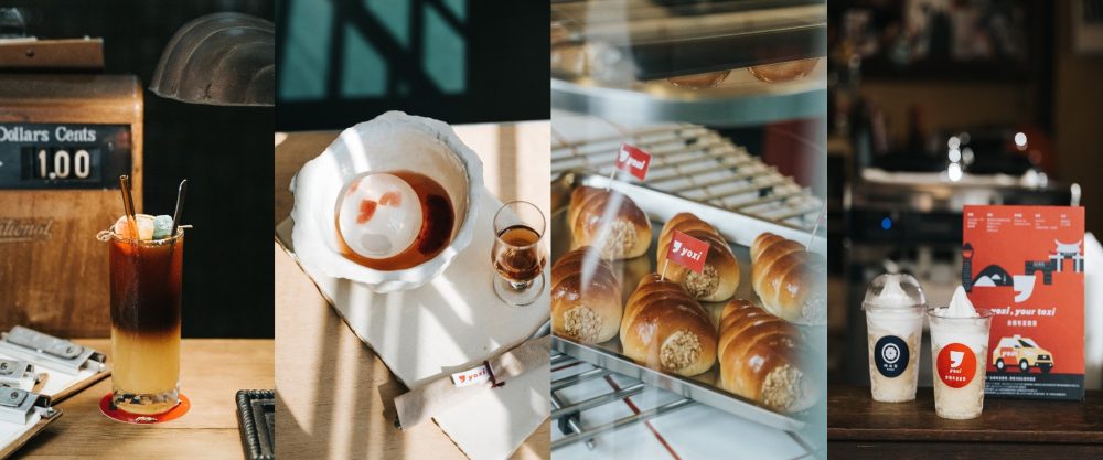 以「喝酒不開車,搭yoxi最安心」為主題,設計以酒入餐點的微醺菜單,下午茶由StableNice BLDG.和PARIPARI APARTMENT帶來暖春的清爽咖啡『澄市漫步』;甜點則由沼澤marsh以yoxi逗點翻玩出『波特玫瑰水信玄餅』;華人冰王蜷尾家推出三款大人微醺系的限定冰品和麵包-『鳳梨可樂達冰鑽杯、紅烏龍草莓威士忌義式冰淇淋、威士忌螺雷』!